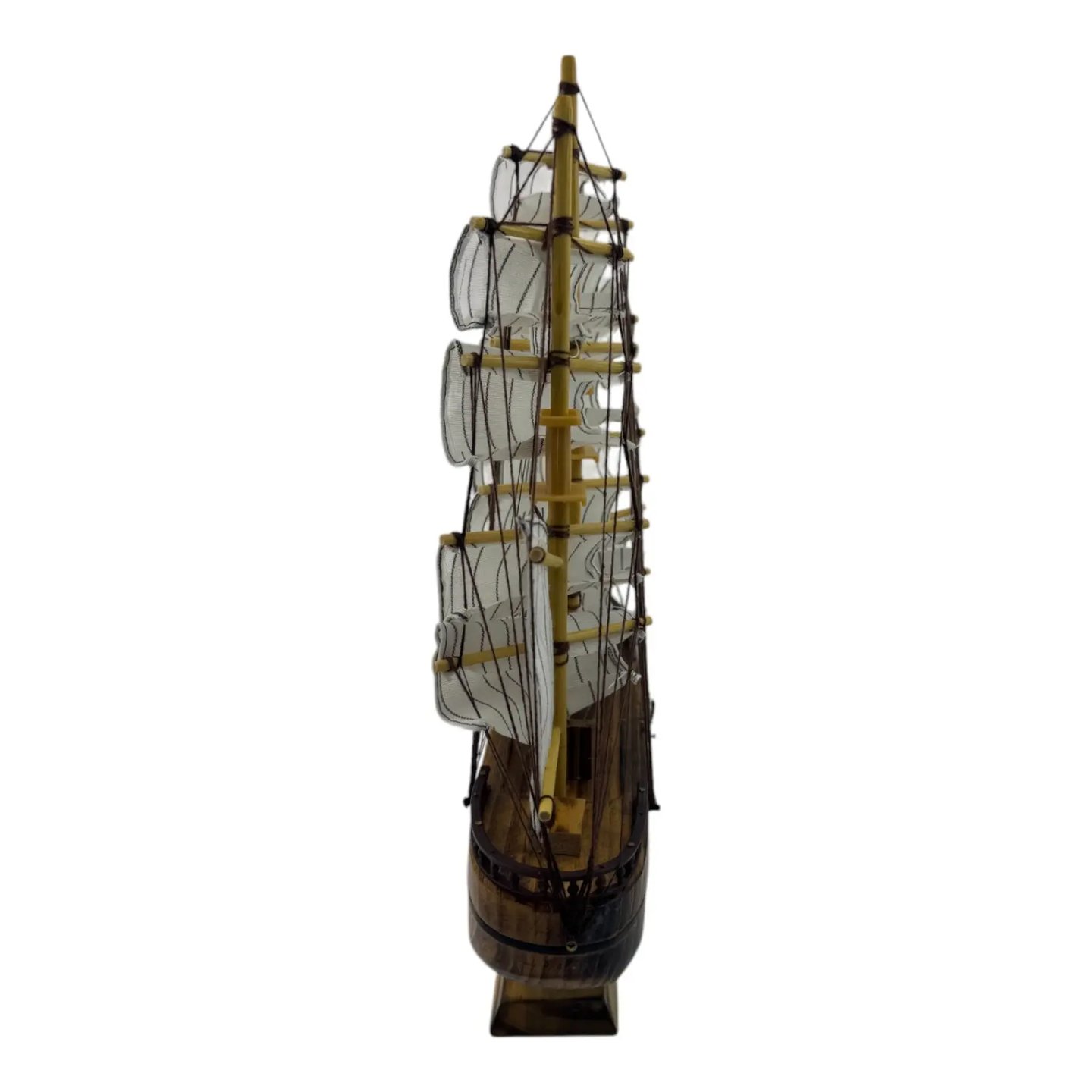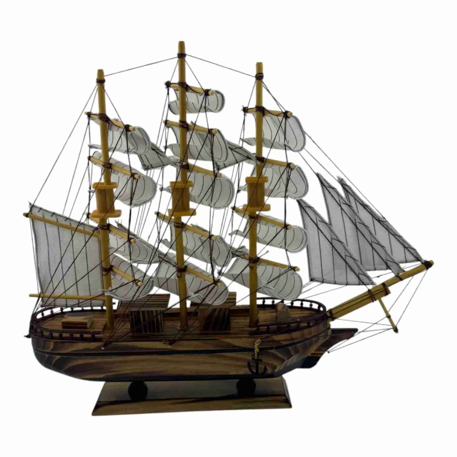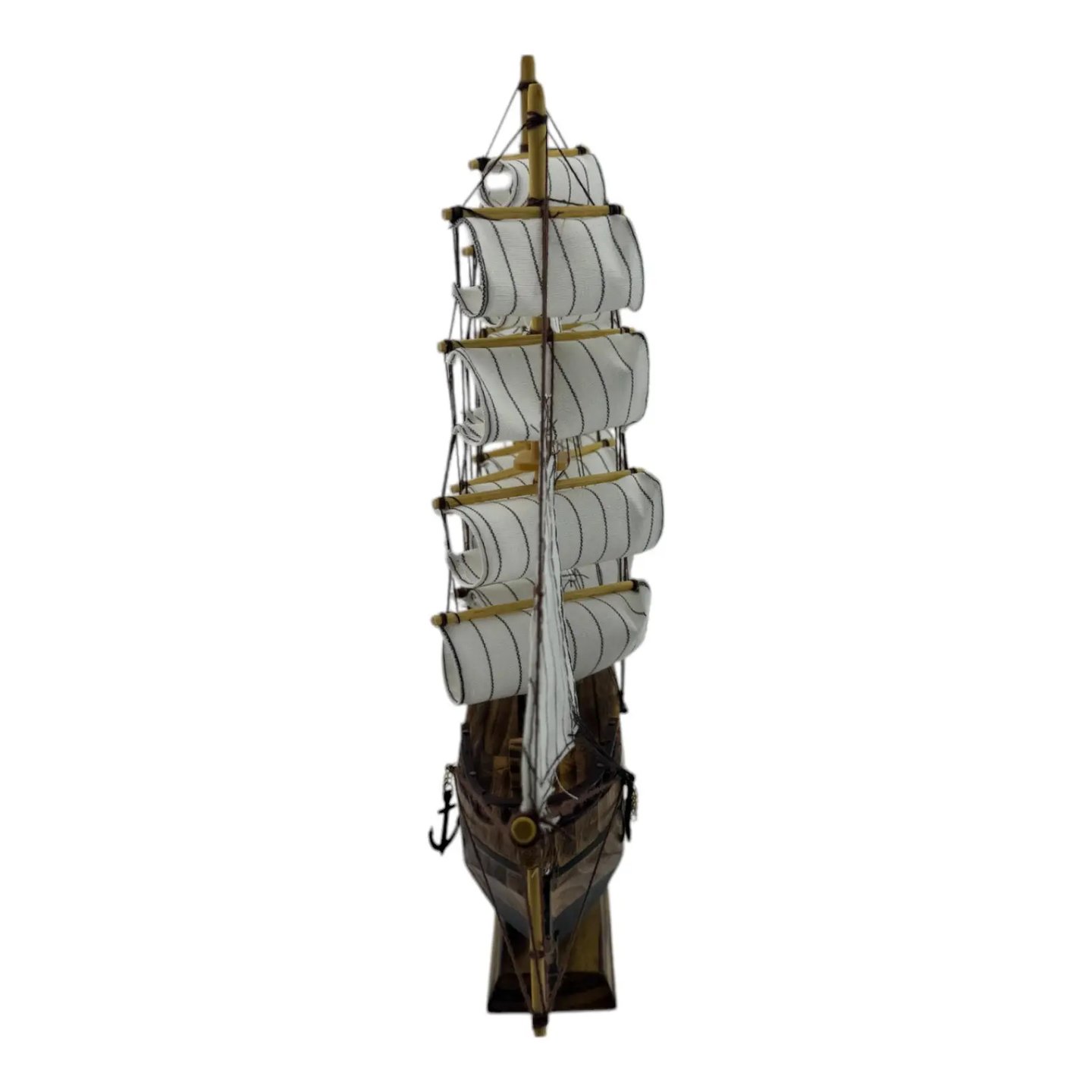 Эта элегантная модель парусника станет стильным украшением вашего дома или рабочего пространства. Изготовленная из натурального дерева и ткани, она переносит в атмосферу великих морских путешествий. Компактный формат позволяет разместить её в любом месте — на полке, столе или каминной зоне, добавляя интерьеру лёгкую романтику и ощущение приключений.