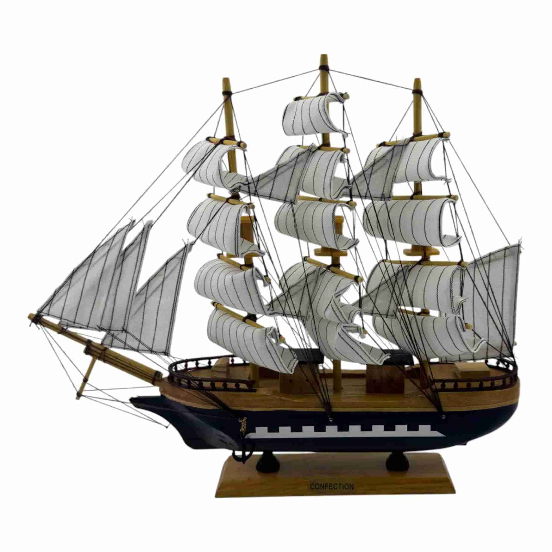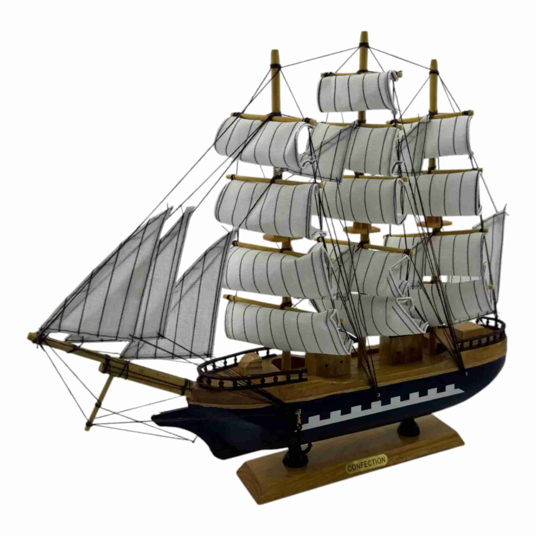 Компактная модель парусника из дерева и ткани — стильный декоративный элемент и отличный подарок для любителей морской тематики.