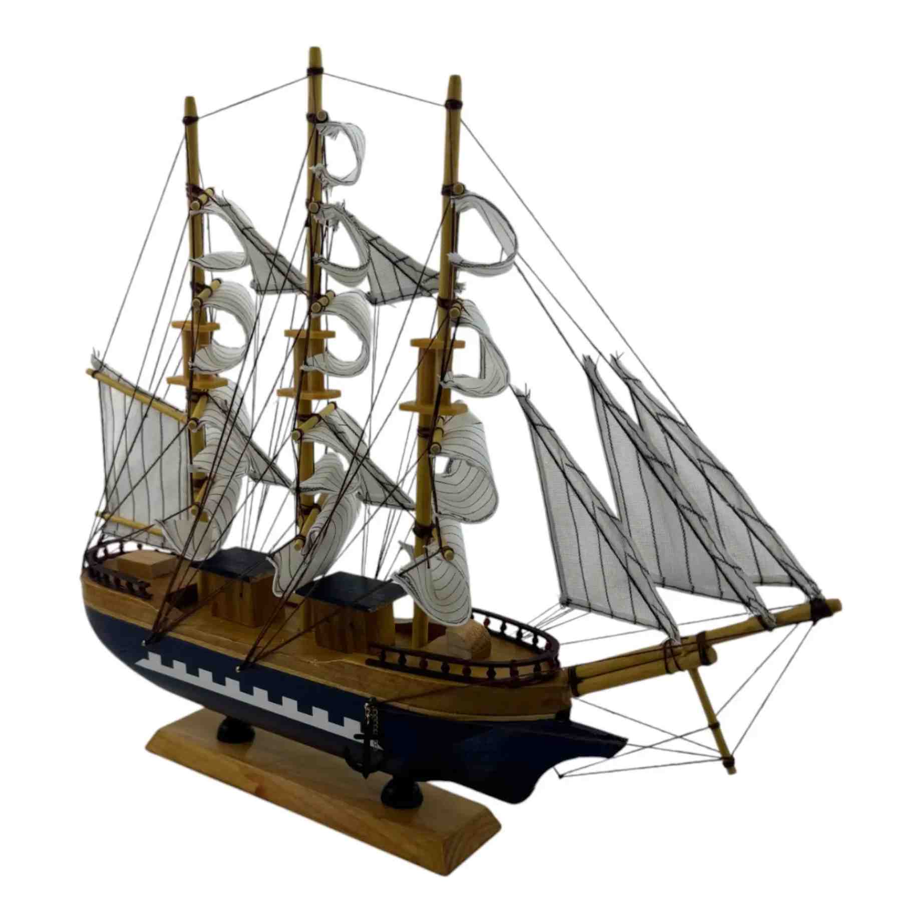 Эта изящная модель парусника станет эффектным украшением вашего дома или рабочего пространства. Изготовленная из натурального дерева и ткани, она переносит в атмосферу великих морских путешествий и открытий. Благодаря компактным размерам её легко разместить в любом месте — на полке, столе или каминной зоне, добавив интерьеру нотку романтики и дух приключений.