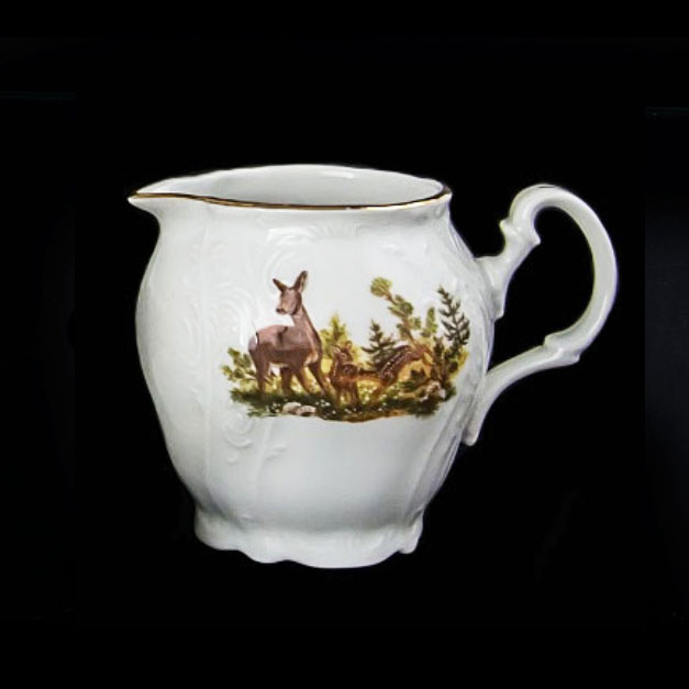 Молочник фарфоровый цветной с рисунком Bernadotte Охота 180 мл с золотой каёмочкой