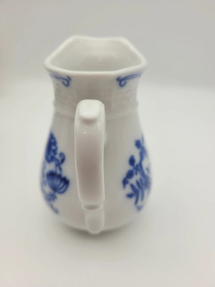 Каждый из этих фарфоровых молочников — как миниатюрная жемчужина на столе. Их формы повторяют классические линии богемского фарфора, а белоснежная поверхность украшена фирменным синим узором в стиле "луковка", который придаёт сервировке утончённость и европейский шик.