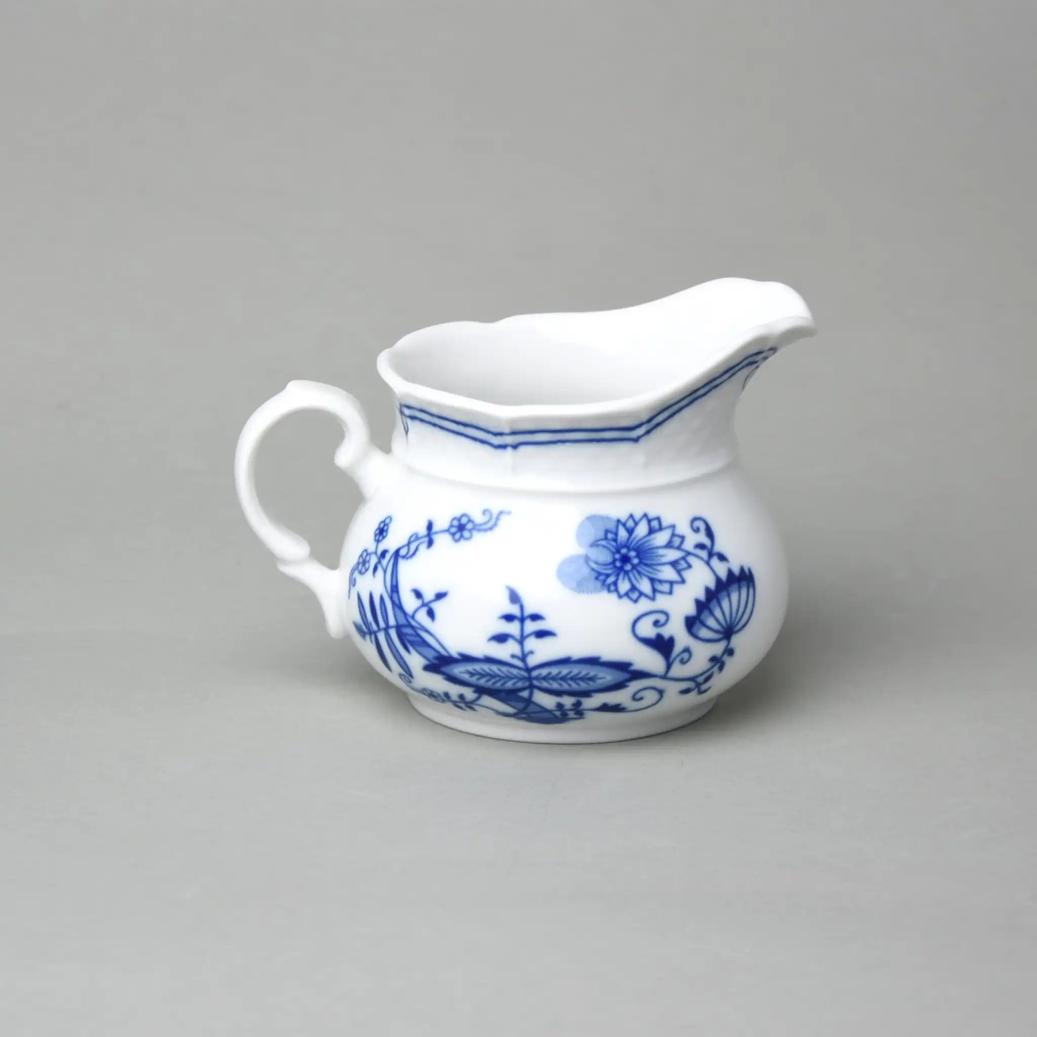 Каждый из этих фарфоровых молочников — как миниатюрная жемчужина на столе. Их формы повторяют классические линии богемского фарфора, а белоснежная поверхность украшена фирменным синим узором в стиле "луковка", который придаёт сервировке утончённость и европейский шик.