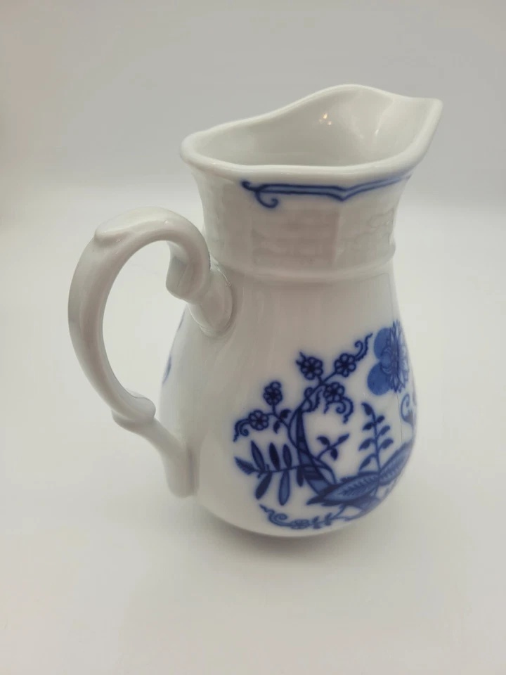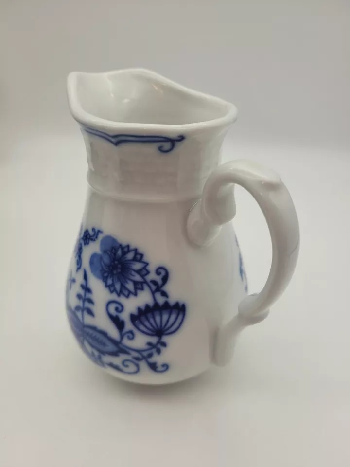 Каждый из этих фарфоровых молочников — как миниатюрная жемчужина на столе. Их формы повторяют классические линии богемского фарфора, а белоснежная поверхность украшена фирменным синим узором в стиле "луковка", который придаёт сервировке утончённость и европейский шик.