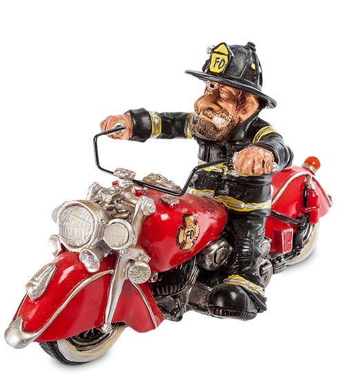 Фігурка "Пожежний Байкер" для екстроординарних професіоналів Байкери - це не молодь. Нормальний байкер - міцний чоловік, серйозний. Цей ось за фахом пожежник, так він і колір мотоцикла вибрав, як у пожежної машини, і в пожежному шоломі їздить, і в відповідний костюм одягнений. А що тут такого? У чому хочу на роботу їздити, у тому й їду. Зручно мені так і швидше. Усім, хто намагається поєднати роботу із захопленням – чудовий подарунок: адже не лише байкери пожежниками працюють, тож думайте, що поєднати.