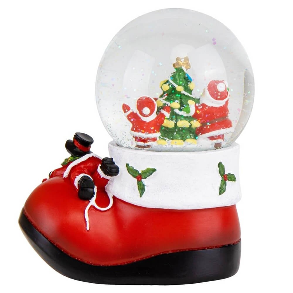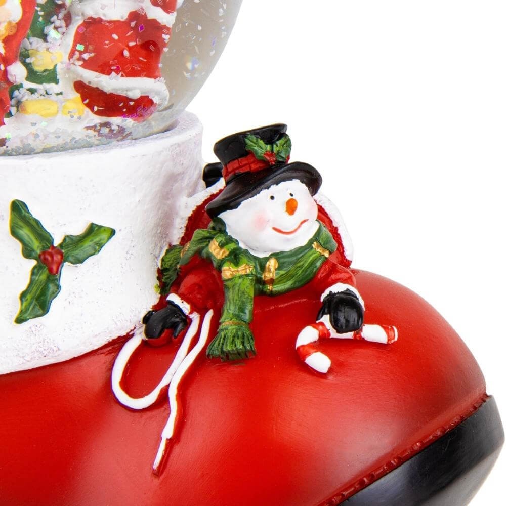 Новогодний снежный шар заводной Ботинок Санты 17 см