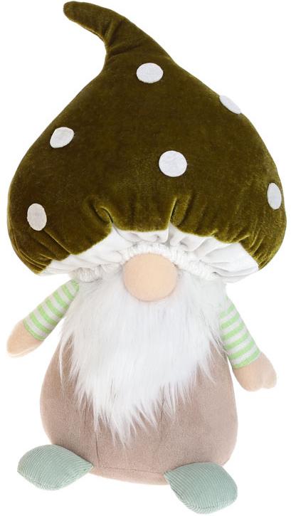 Новогодняя фигурка мягкая Гномик-грибочек в зеленой шапке 33 см