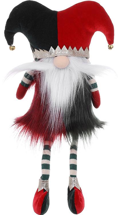 Новогодняя мягкая игрушка Сидящий Гном-Арлекин 35 см