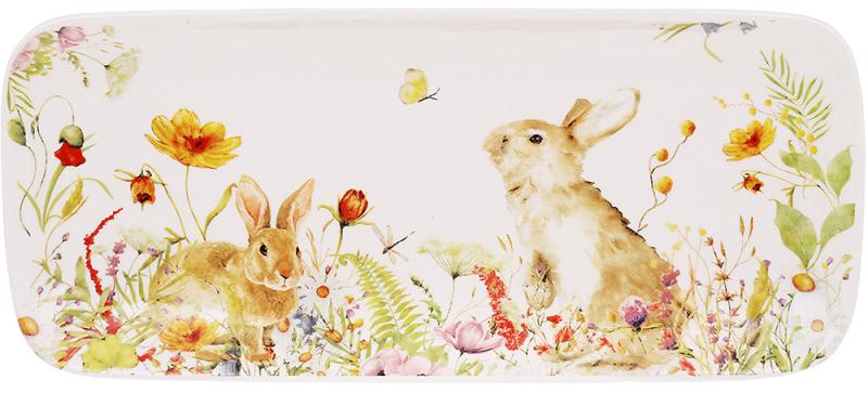 Підкресліть стиль вашого святкового чи щоденного столу з набором керамічних прямокутних блюд з колекції Easter Meadow! У комплекті — два блюда розміром 37×16 см, висота — 3 см. На кожному — живий весняний сюжет: руді зайці серед квітучого лугу з барвистими метеликами. Такий дизайн одразу створює приємну атмосферу та гармонійно доповнює сервірування. Блюда надійно запаковані в щільну картонну коробку — зручно для зберігання і як подарунок. Обирайте Easter Meadow — для теплих моментів за столом!