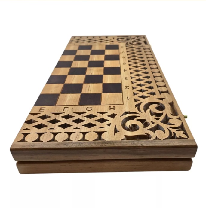 Набір 3в1 (нарди, шахи, шашки) різьблений 56×28×2,2см