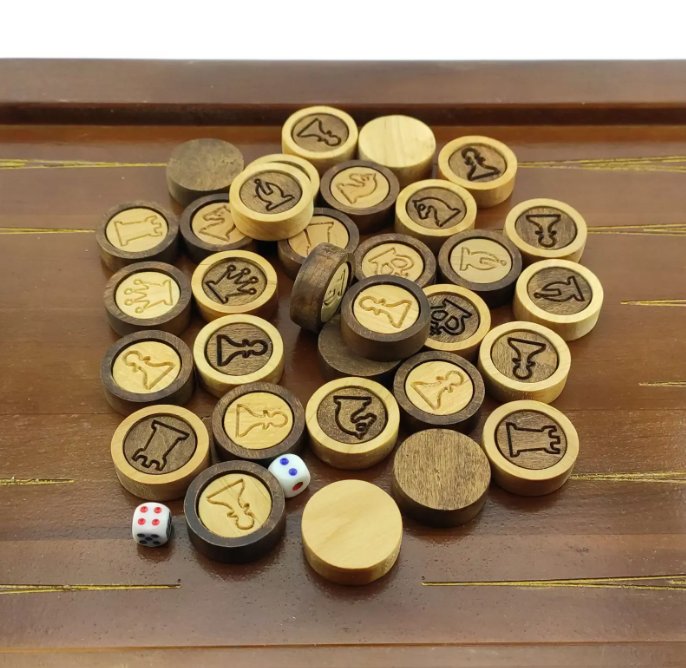 Особливістю набору є універсальні фішки, які підходять для всіх трьох ігор. На кожній фішці нанесено зображення шахової фігури, що дозволяє використовувати їх як для шашок, так і для шахів. Фішки виготовлені з масиву дерева та мають акуратну форму.