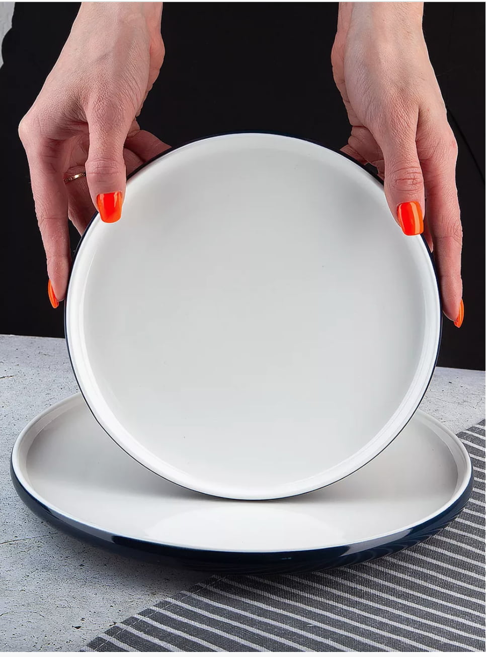 - Изящный декор: наружная часть тарелок покрыта кобальтовым цветом, что придает глубине и элегантности, а верхняя часть остается чисто белой для акцента на блюдах.