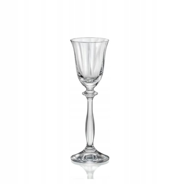 Набір чарок для горілки Bohemia Angela Optic — це справжнє втілення елегантності та майстерності чеських склодувів. Кожна з шести чарок об'ємом 60 мл виготовлена з кристально прозорого богемського скла, що славиться не лише своїм блиском і чистотою, а й винятковою міцністю. Форма чарок ретельно продумана: висока витончена ніжка, тонкі оптичні грані, які гарно заломлюють світло — усе це робить подачу напою по-справжньому вишуканою.