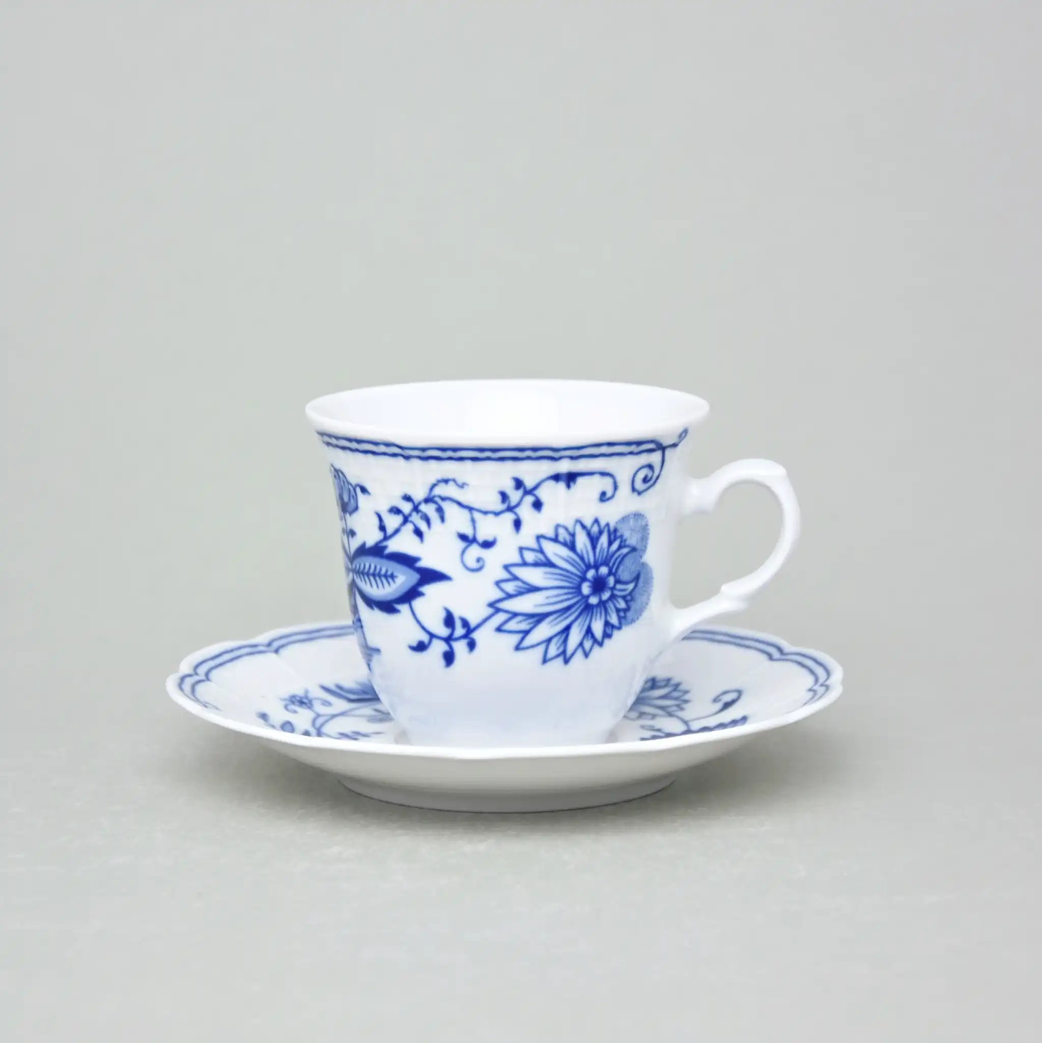 Цей набір фарфорових чашок — як палітра настроїв на кожен день. У ньому три форми, кожна з яких має своє призначення і функціональність. Білий глянцевий фарфор з легендарним синім орнаментом «Цибуляки» створює настрій тепла, сімейності й поваги до традицій за кожним столом.