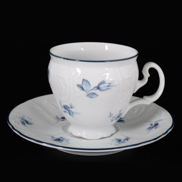 Набір чашок із блюдцями білого кольору з синім декором Thun Bernadotte Квітневе Цвітіння 90 мл/12 пр із синьою окрайкою