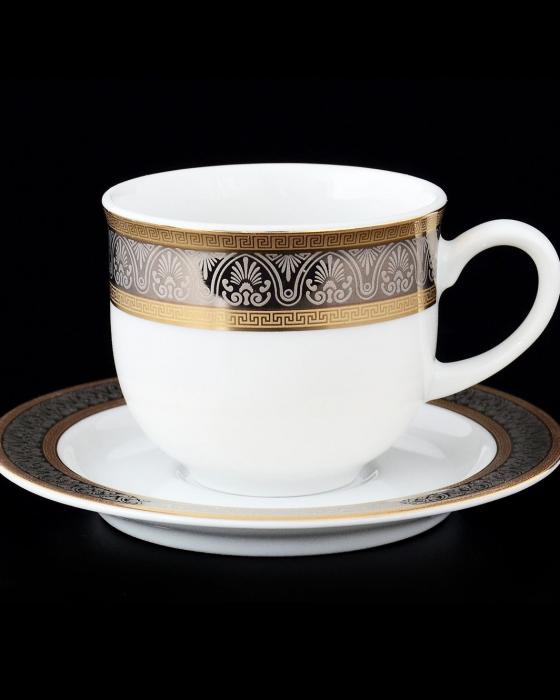 Набір чашок з блюдцями Thun Opal з широким золотим кантом, 12 шт