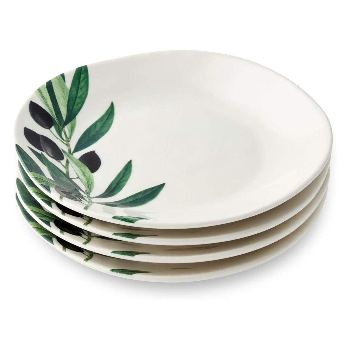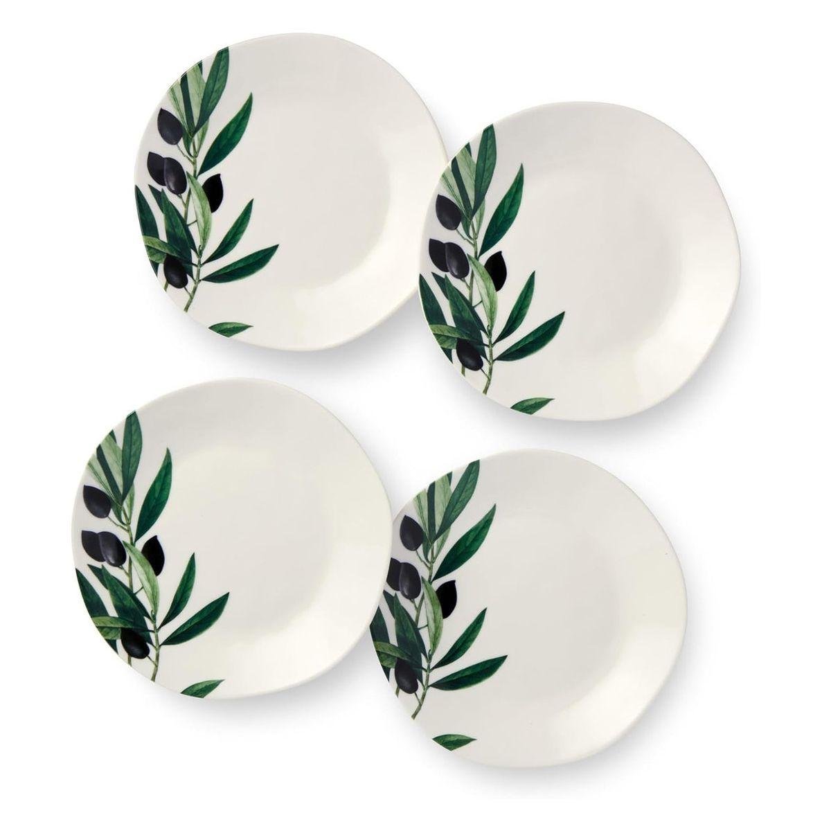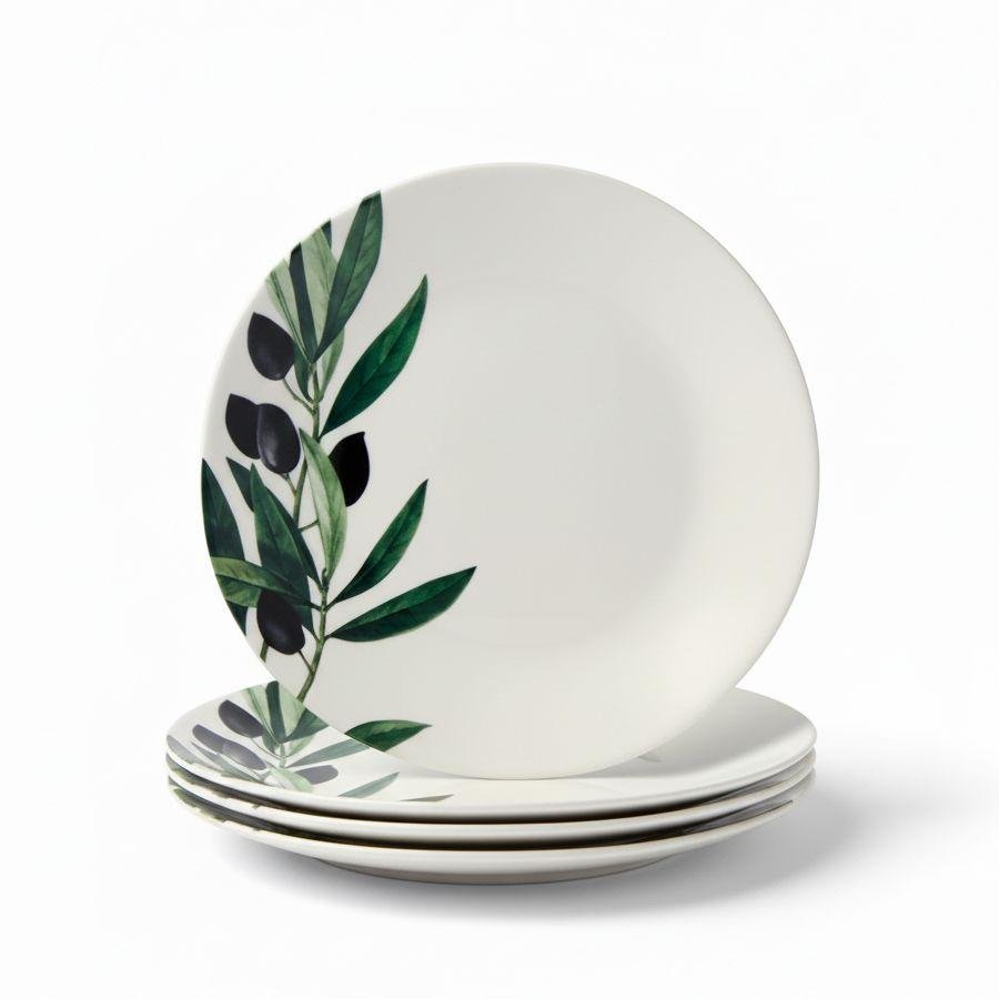 Цей набір десертних тарілок із вишуканим малюнком оливкової гілки додає сервіруванню середземноморського настрою та робить будь-яку подачу стильнішою й виразнішою. Ідеальний діаметр 15 см дозволяє використовувати тарілки для десертів, закусок і невеликих порцій, перетворюючи кожну страву на маленьке свято. Посуд можна мити в посудомийній машині та використовувати в мікрохвильовій печі для розігріву. Не рекомендується використовувати засоби для чищення з абразивними частинками. Завдяки міцній кераміці та якісному нанесенню малюнок залишається яскравим навіть за щоденного використання. Такий набір стане ефектним акцентом на вашому столі й надихне створювати ще більше красивих і смачних моментів удома.