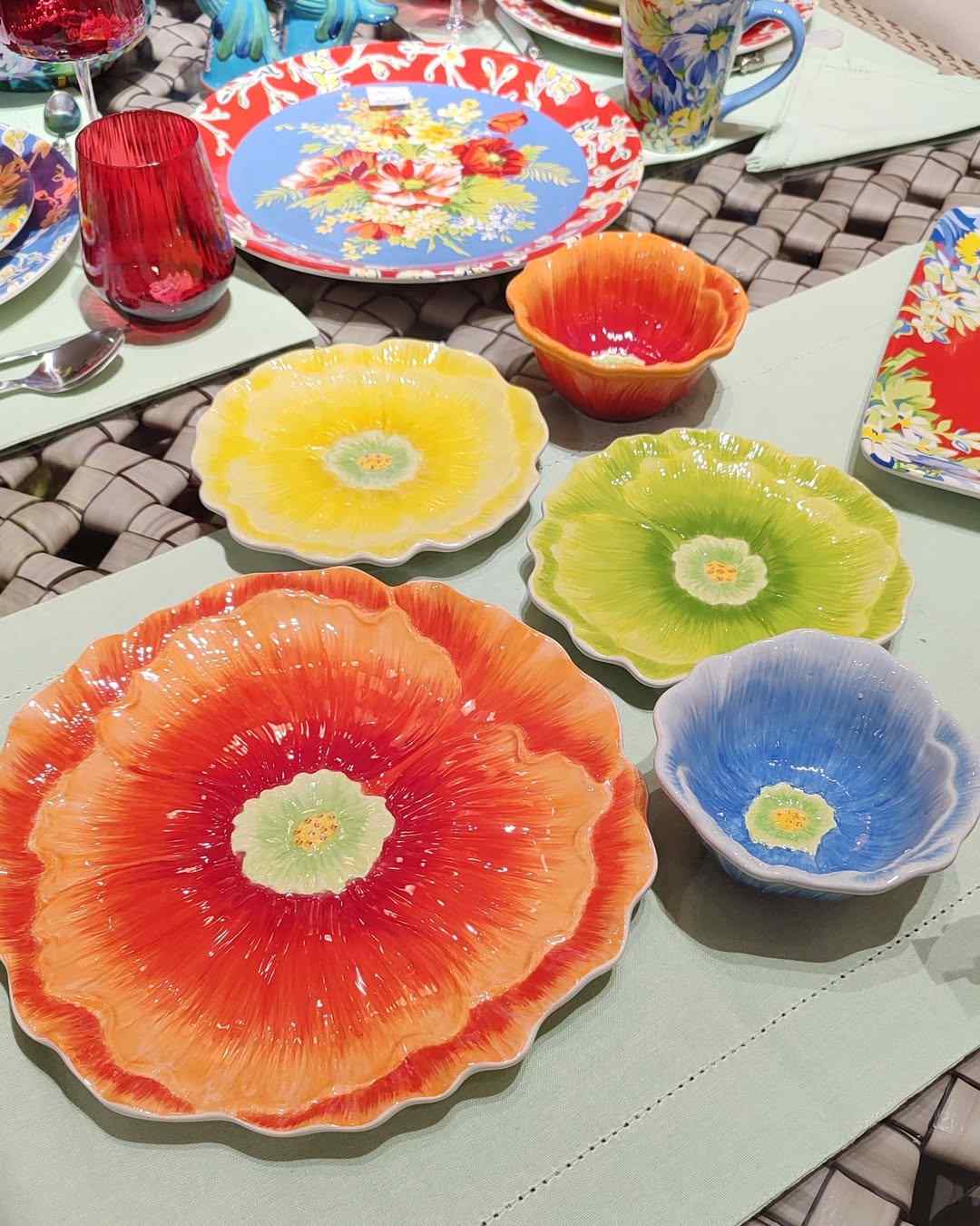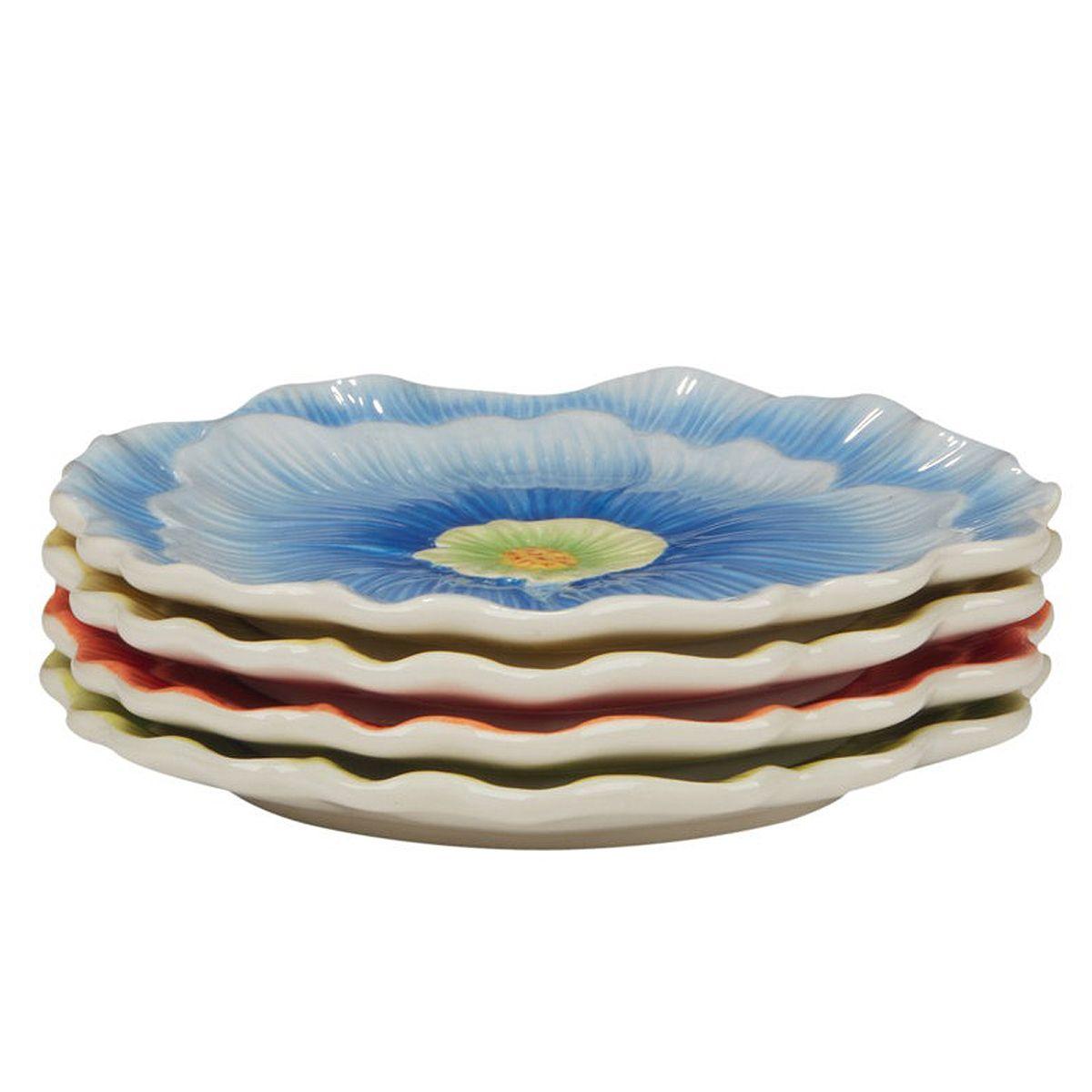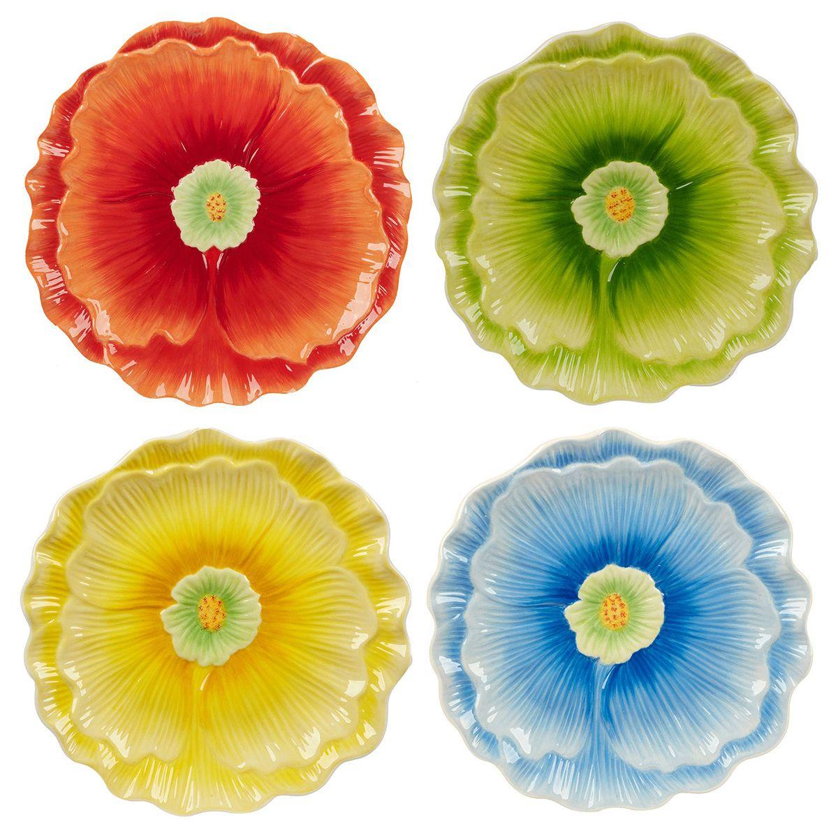 4 тарілки у вигляді квітів різних кольорів. Діаметр кожної тарілки: 20,5 см