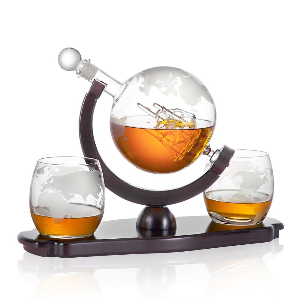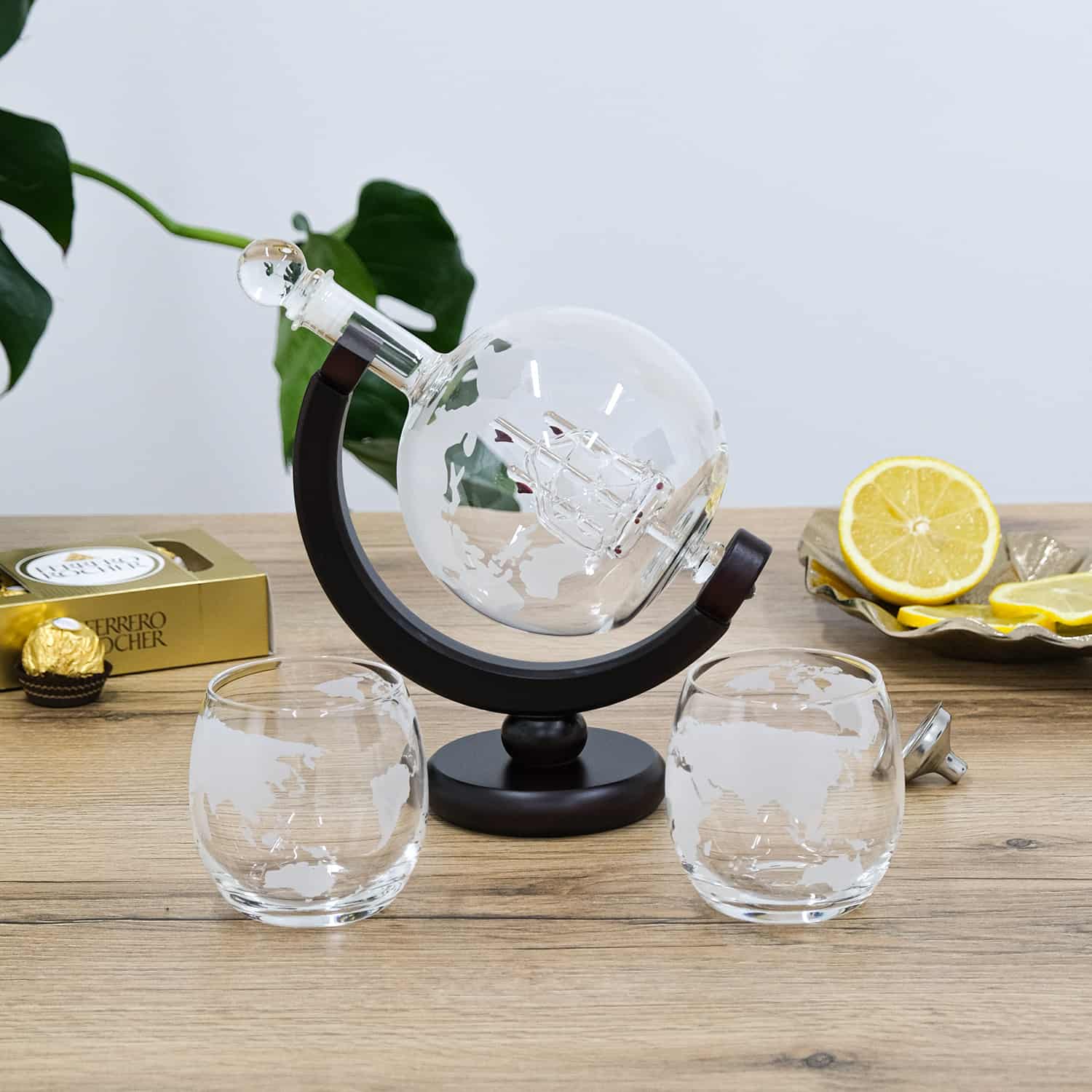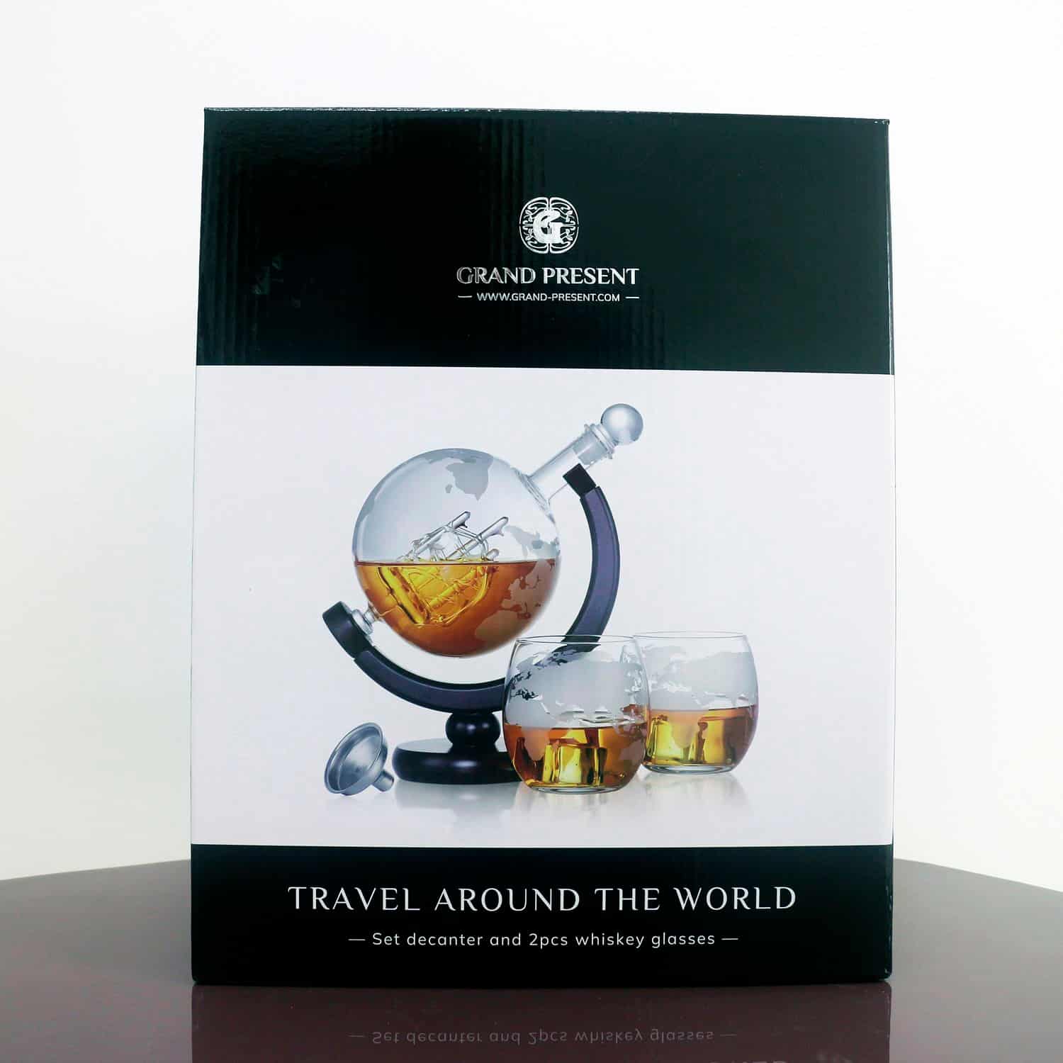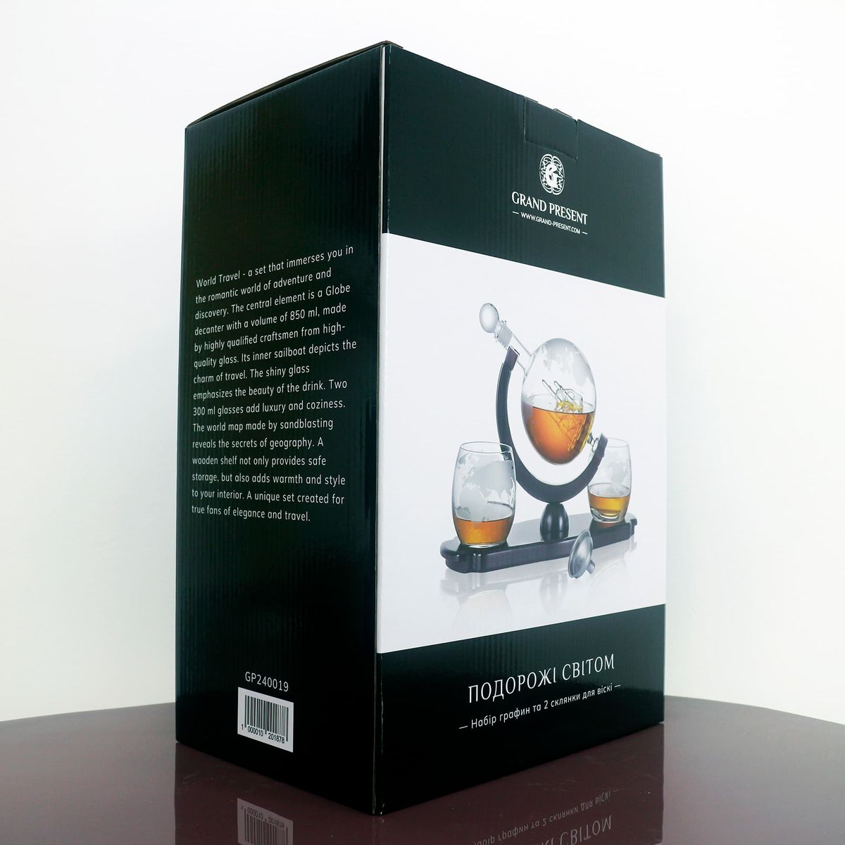 - Графин: сделан из тонкого прозрачного стекла, внутри которого находится изящный парусник, создающий уникальный визуальный эффект при подаче виски, напоминая о путешествиях и открытиях новых мест.