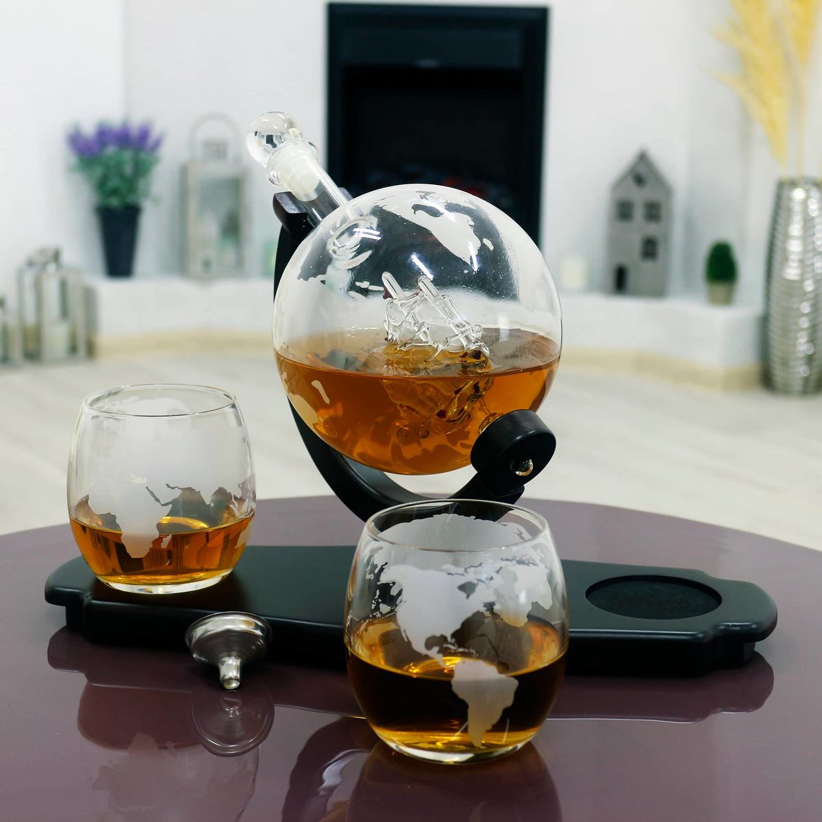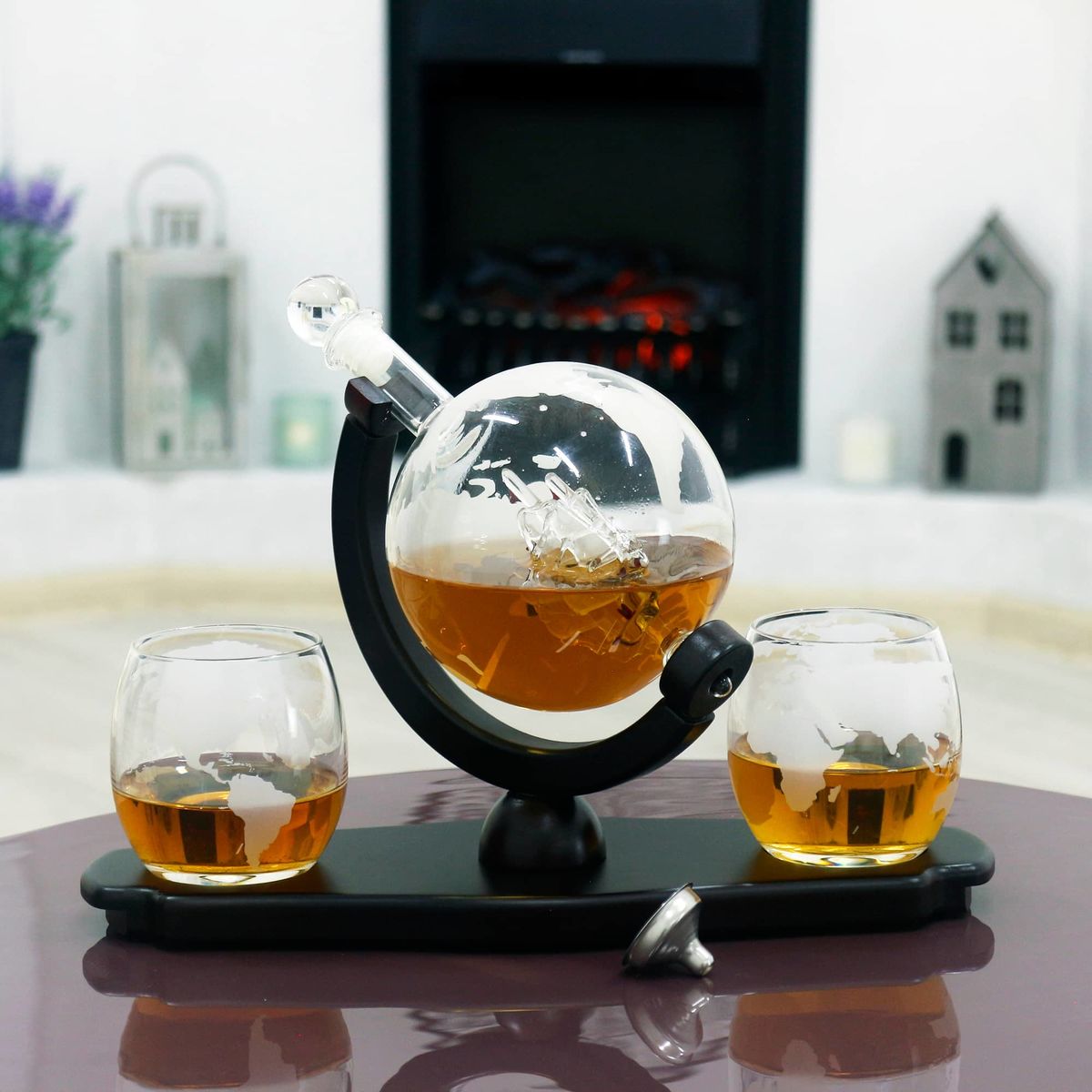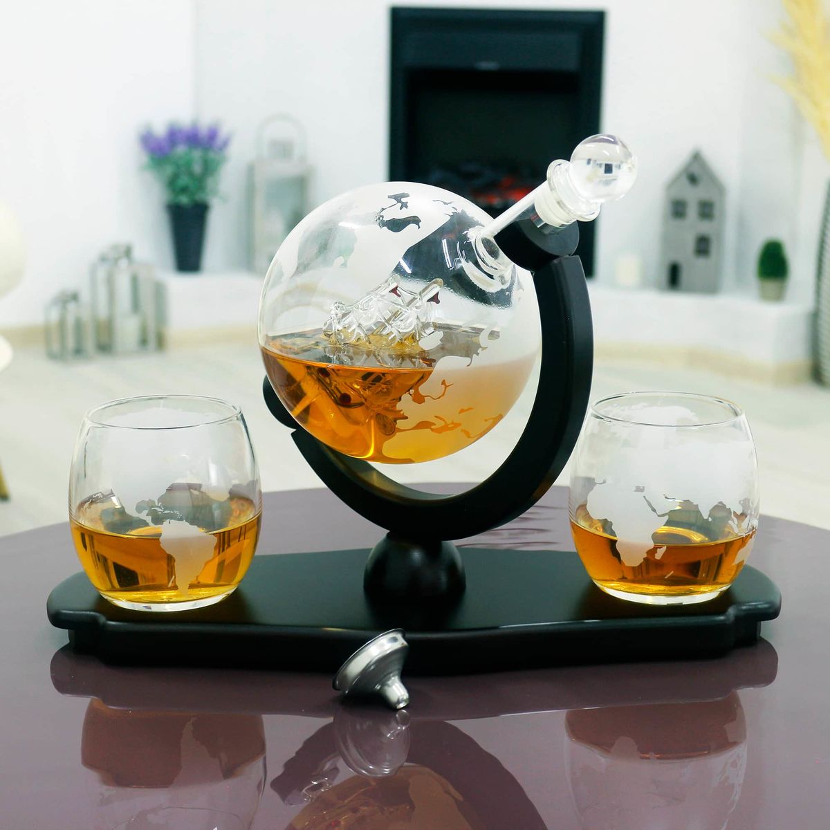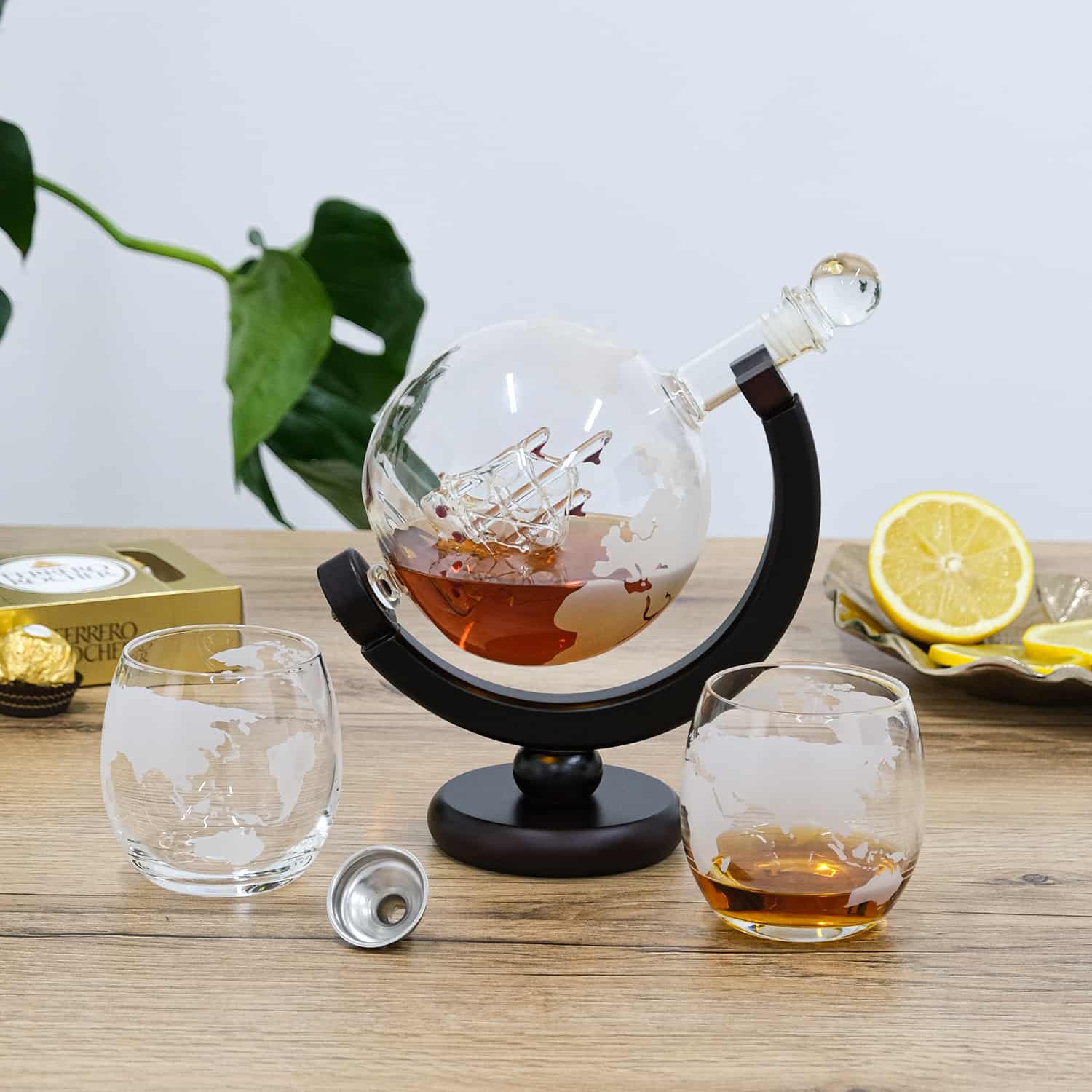 - Графин: сделан из тонкого прозрачного стекла, внутри которого находится изящный парусник, создающий уникальный визуальный эффект при подаче виски, напоминая о путешествиях и открытиях новых мест.