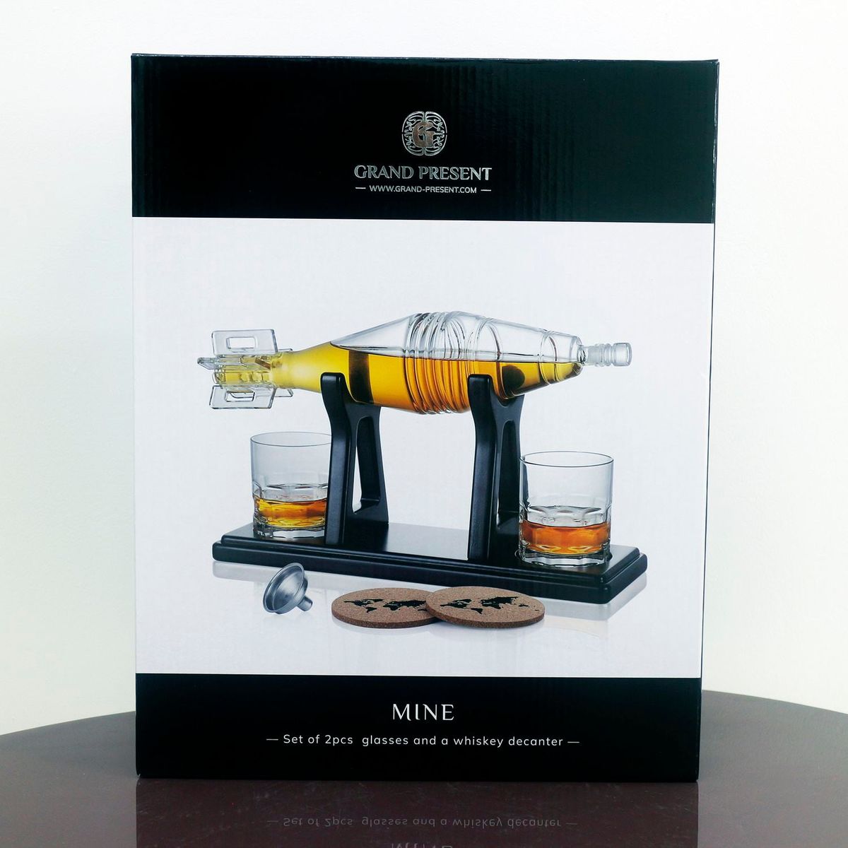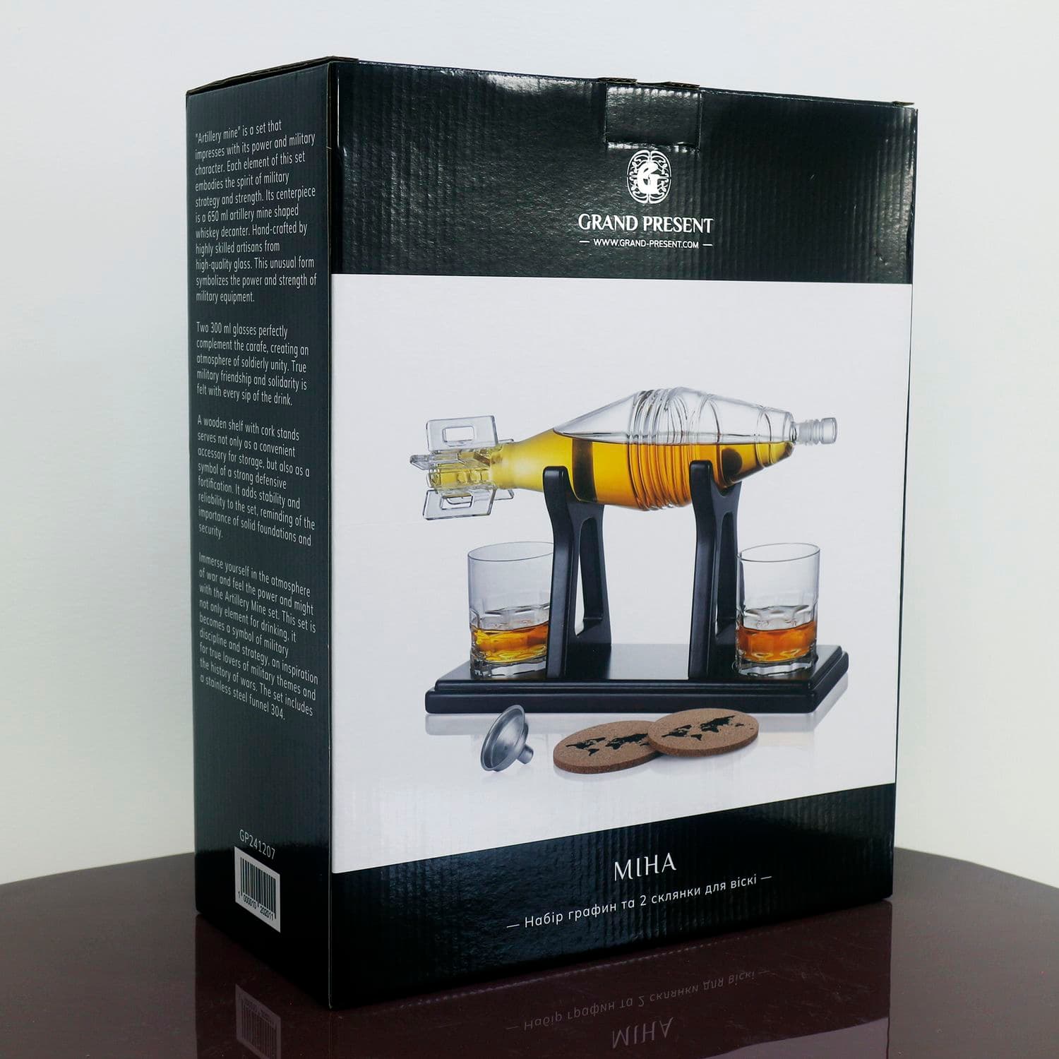 Графин (650 мл) выполнен в форме мины, символизирует силу, смелость и решительность. Такой графин станет эффектным акцентом в баре и ценным элементом любой коллекции.Стаканы идеально дополняют графин, создавая гармоничный набор для стильной подачи напитков.