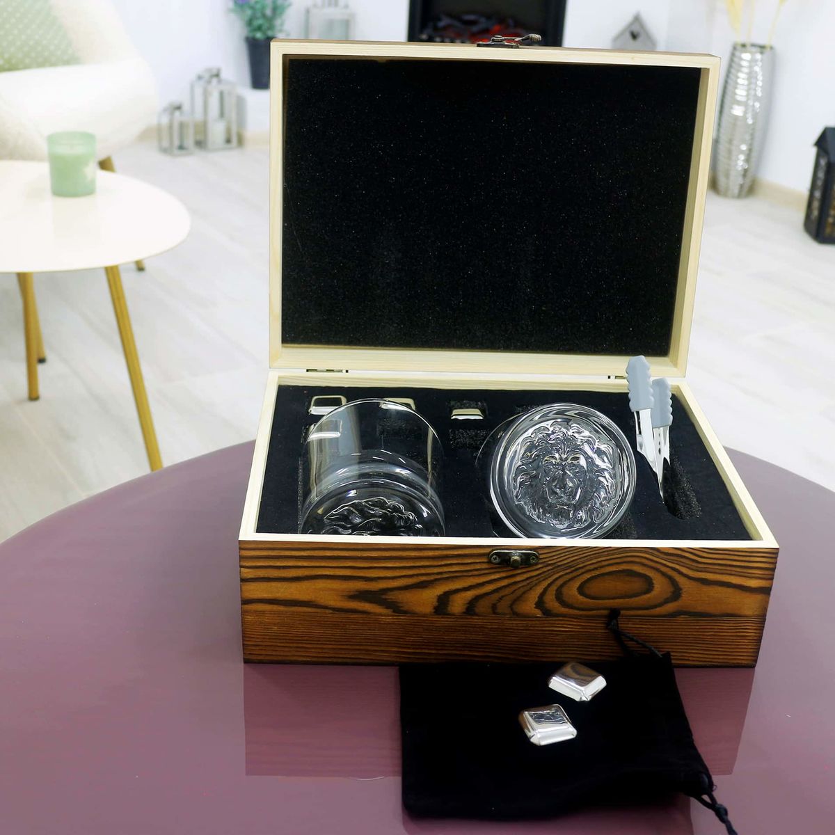 Набір для віскі зі склянок 2 шт/300 мл та 6 кубиків для льоду Лев