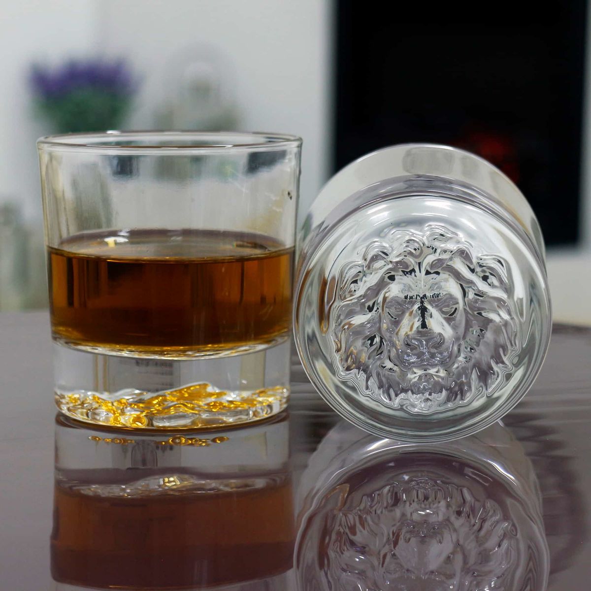 Дві склянки об'ємом 300 мл, на дні кожного з яких виконане об'ємне зображення лева.