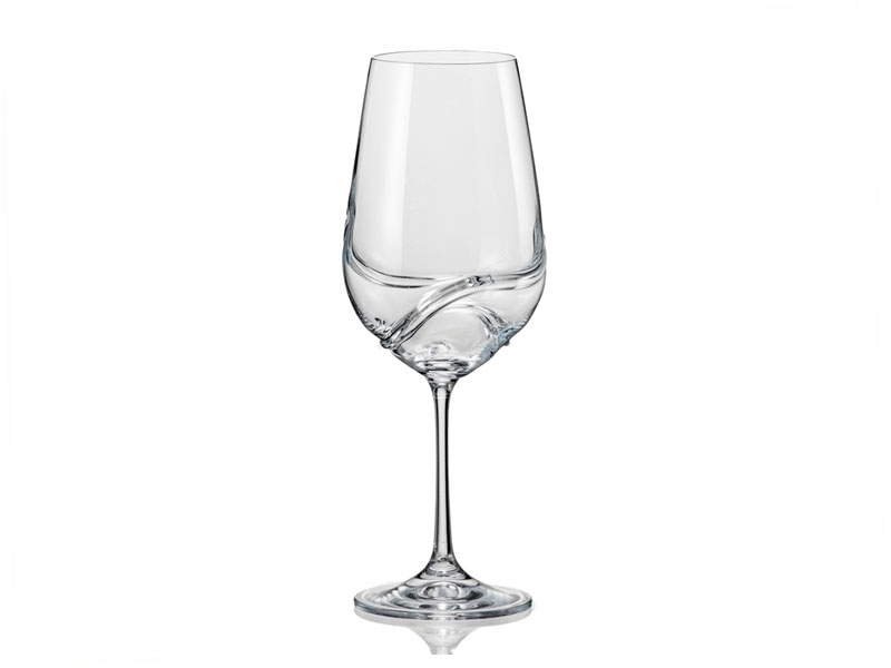 Набір келихів для вина Bohemia Turbulence - це сміливий акцент у сервіруванні та продумана функціональність. Вишуканий келих із високою ніжкою та елегантно витягнутою чашею має сучасний і витончений вигляд. Його унікальна особливість - плавна внутрішня хвиля, ніби застигла всередині скла, надаючи келиху динамічності та візуальної енергії.