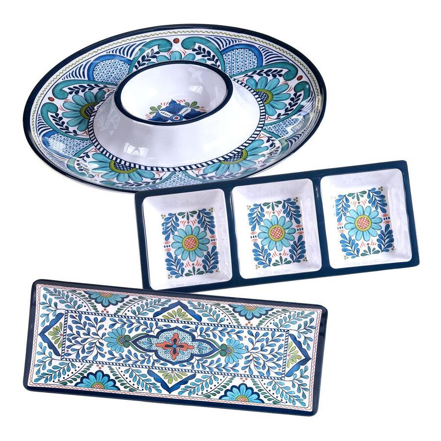Набір із 3-х сервірувальних блюд з орнаментом Мексиканська Талавера