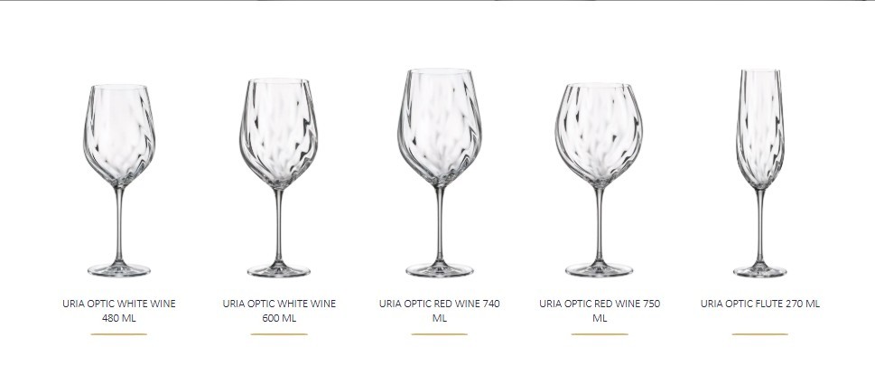 Uria Optic — це витонченість без зайвого пафосу. Це келихи, що поєднують класику з сучасністю, лаконічність із виразністю. Вони чудово лежать у руці, приємно звучать у тості, створюють враження в інтер'єрі. Їх однаково приємно дарувати та отримувати — як винним поціновувачам, так і естетам сервірування.
