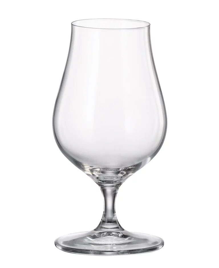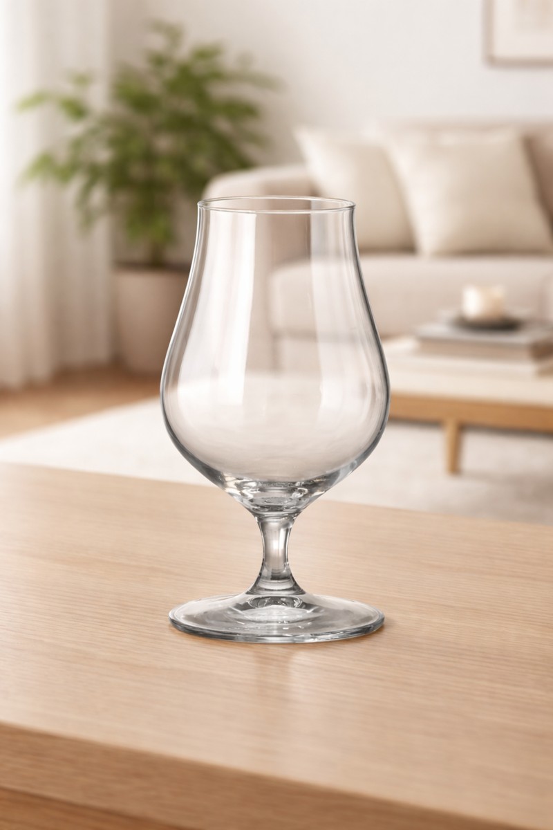 Форма келиха виконана в сучасному тюльпаноподібному стилі: широка чаша дозволяє пиву «дихати» та збагачуватися киснем, а звужена верхня частина утримує піну й концентрує аромат. Таке рішення перетворює дегустацію на справжню естетичну насолоду, підкреслюючи не лише смак, а й культуру споживання. Келих зручно лежить у руці, створюючи відчуття легкості та витонченості.