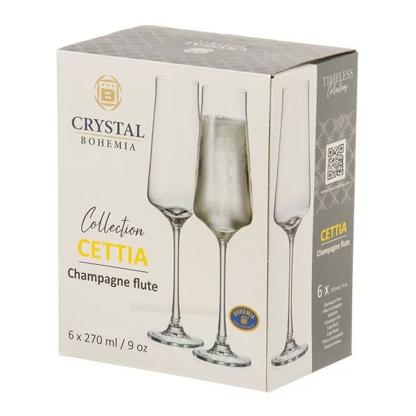 Набір келихів для шампанського Bohemia CETTIA — це гармонійне поєднання сучасної геометрії та традиційної якості богемського скла. Нова модель виконана в лаконічному дизайні з виразними прямими лініями та елегантною посадкою на високій ніжці. Прозоре скло підкреслює легкість силуету й відкриває напою візуальну глибину, роблячи кожен келих доречним як у домашній, так і в професійній сервірувальній подачі.
