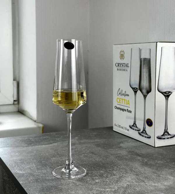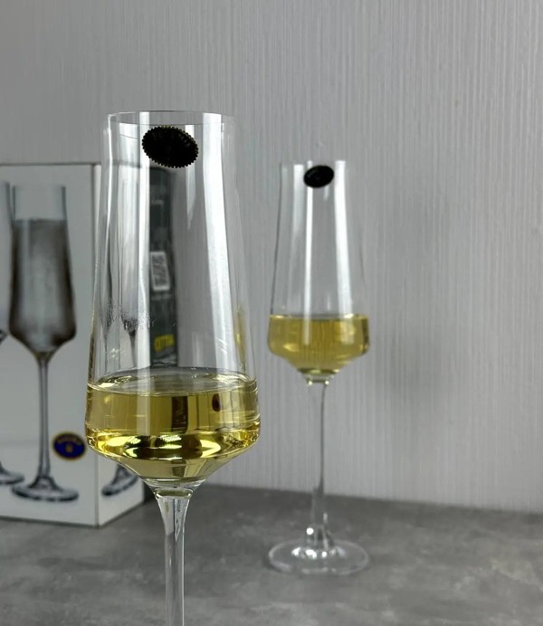 Об’єм кожного келиха становить 270 мл — це збільшений формат, який чудово підходить як для класичного шампанського, так і для різних ігристих вин. Така місткість дозволяє краще розкрити аромат напою, при цьому зберігається ідеальний баланс між формою чаші та функціональністю. Вузьке горлечко утримує потік бульбашок, продовжуючи свіжість і насиченість напою до останнього ковтка.