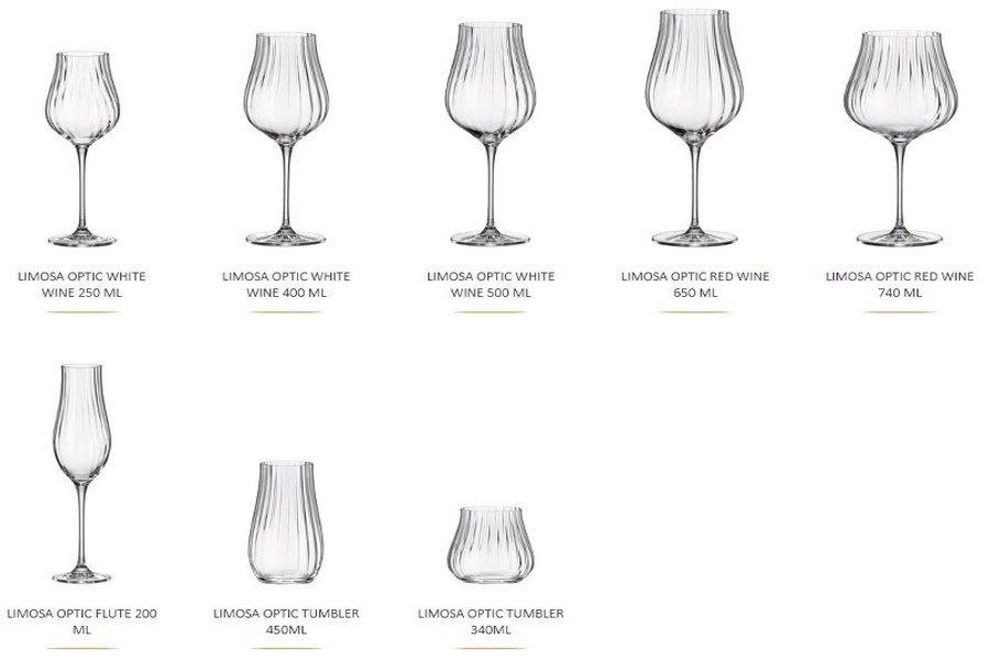 Елегантні форми, кристальна прозорість скла та вишукана обробка роблять продукцію Bohemia Limosa ідеальним вибором як для особливих випадків, так і для щоденного використання. Будь то святкове застілля, затишна сімейна вечеря чи розкішний подарунок — вироби з цієї колекції підкреслять ваш смак і додадуть вишуканості будь-якому простору.