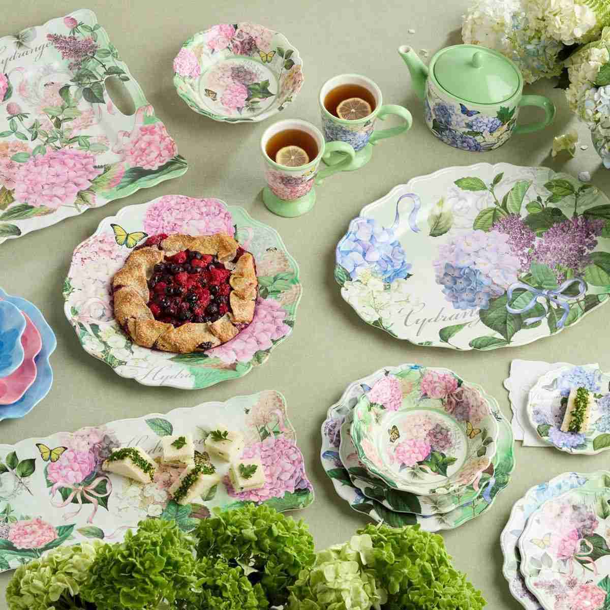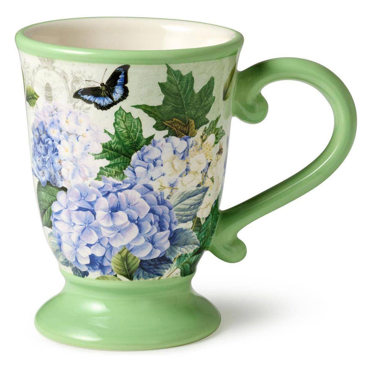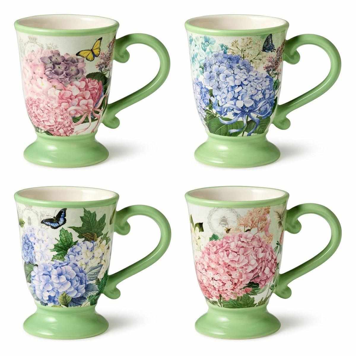 Набір керамічних чайних чашок «Букет гортензій» Certified International наповнює кожен чайний церемоніал відчуттям затишку та квіткового натхнення. Місткі чашки об’ємом 420 мл і висотою 12,5 см зручні для чаю, какао чи ароматної ранкової кави, створюючи ідеальний настрій із першого ковтка. Кераміка зберігає тепло напою та прикрашена ніжними зображеннями гортензій і метеликів, перетворюючи кожну чашку на маленький витвір мистецтва. Вироби можна мити в посудомийній машині та використовувати в мікрохвильовій печі, що робить їх практичними для щоденного використання. Поверхня легко очищується, однак для збереження яскравого принта не рекомендується застосовувати абразивні засоби. Стиль бренду походить зі США, а виробництво на заводах Certified International у КНР забезпечує високу якість і довговічність кожної чашки.