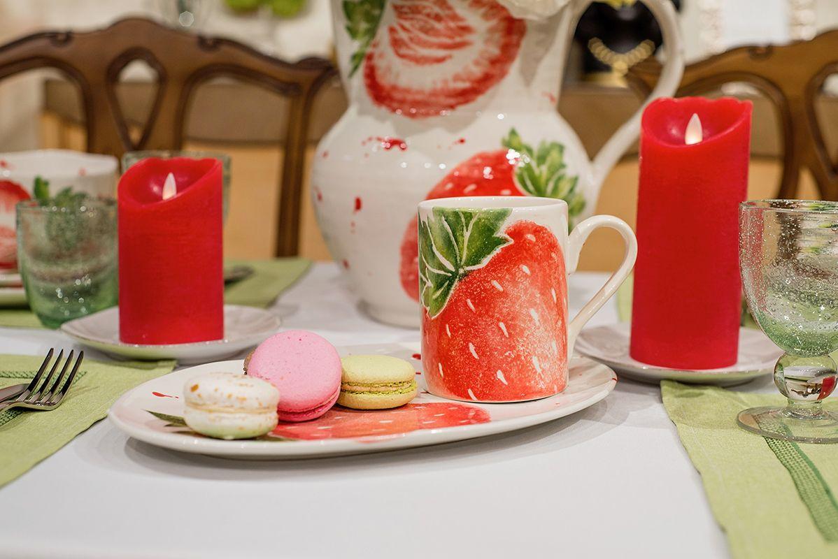 Керамічна чашка «Фруктовий коктейль» Villa Grazia із соковитою полуницею на білому тлі — втілення літнього настрою та свіжості. Акварельне зображення ягоди з зеленим листком виглядає об’ємно та природно, додаючи посуду особливої привабливості. Об’єм 380 мл, діаметр 9 см і висота 11,5 см роблять чашку зручною для кави, чаю або какао. Кераміка добре утримує тепло напою та приємна на дотик. Така чашка стане яскравою деталлю кухні й подарує гарний настрій щодня.