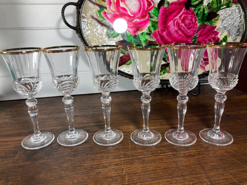 Набір кришталевих келихів Аурея 6 шт/ 160 мл із золотою облямівкою
