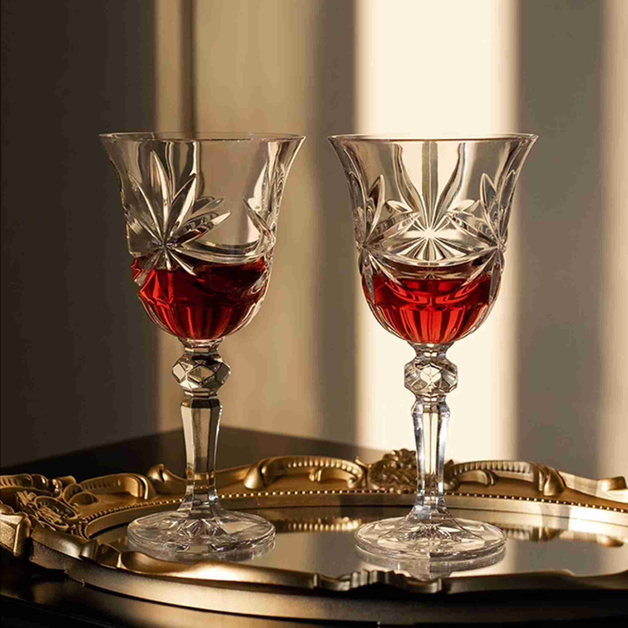 Завдяки тонкому огранюванню та елегантному дизайну, келихи не лише підкреслюють благородство напою, а й роблять подачу вина справжньою подією. Вони ідеально підходять як для урочистої вечері, так і для затишного вечора вдома. Такий набір — це не просто посуд, це знак смаку, уваги до деталей та поваги до моменту.