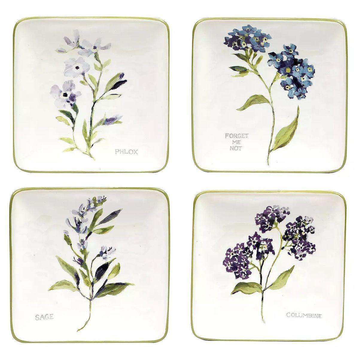 Набір квадратних тарілок для закусок кераміка Ароматні Трави 4 шт