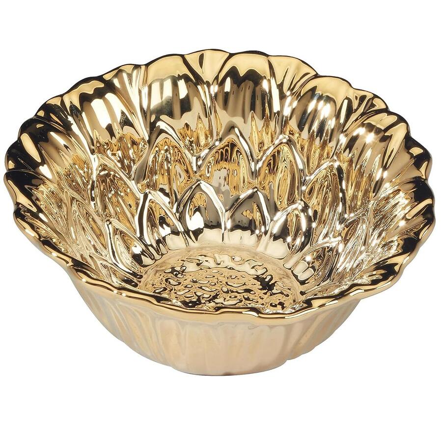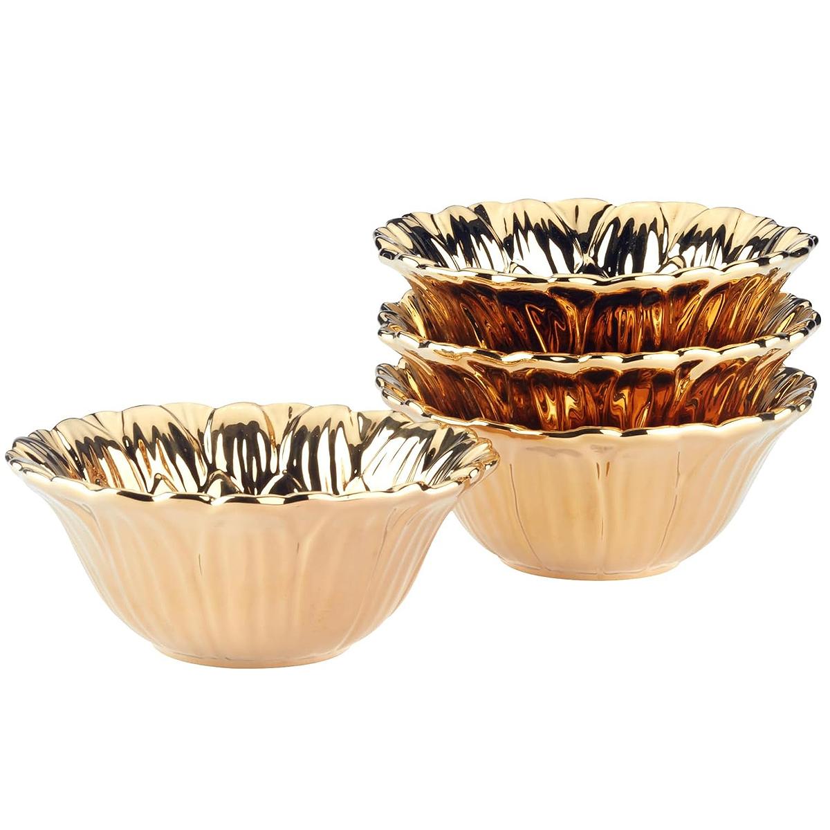 Набір із 4-х 3D піал золотого кольору "Золотисті Соняхи" від Certified International – це поєднання вишуканого дизайну та функціональності. Завдяки рельєфній текстурі у вигляді квітки та глянцевому золотому покриттю, ці піали стануть стильним акцентом будь-якої сервіровки. Вони ідеально підходять для подачі десертів, фруктів, горішків або соусів.