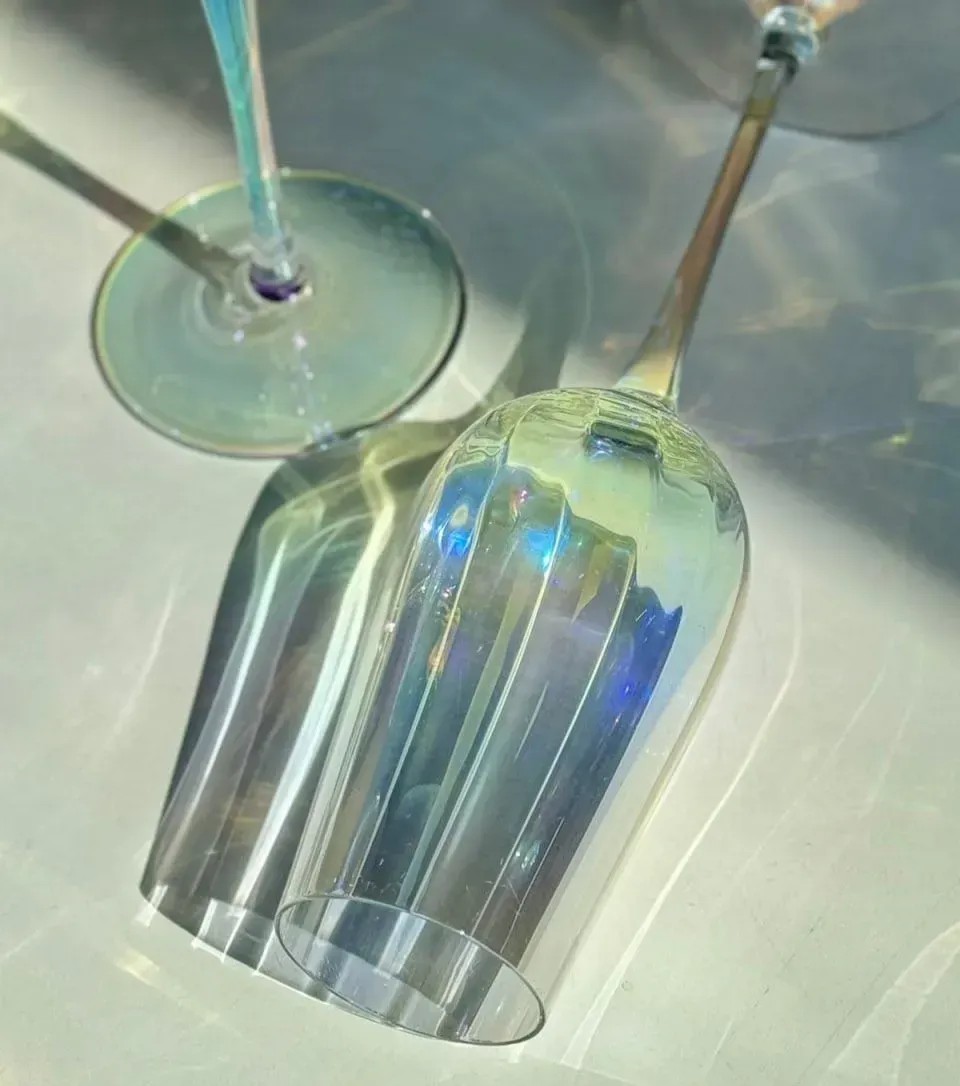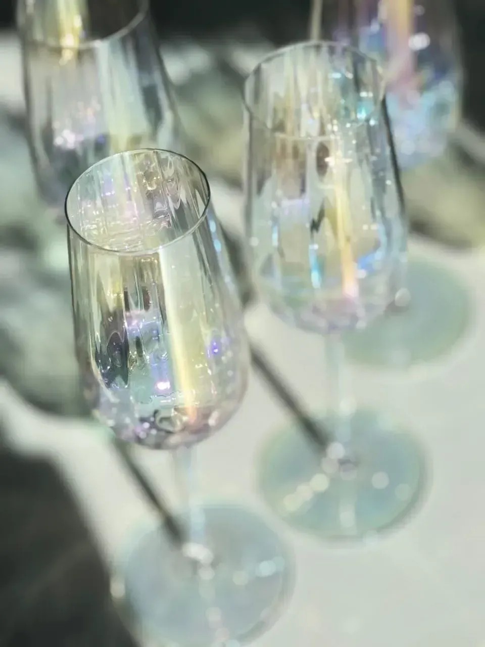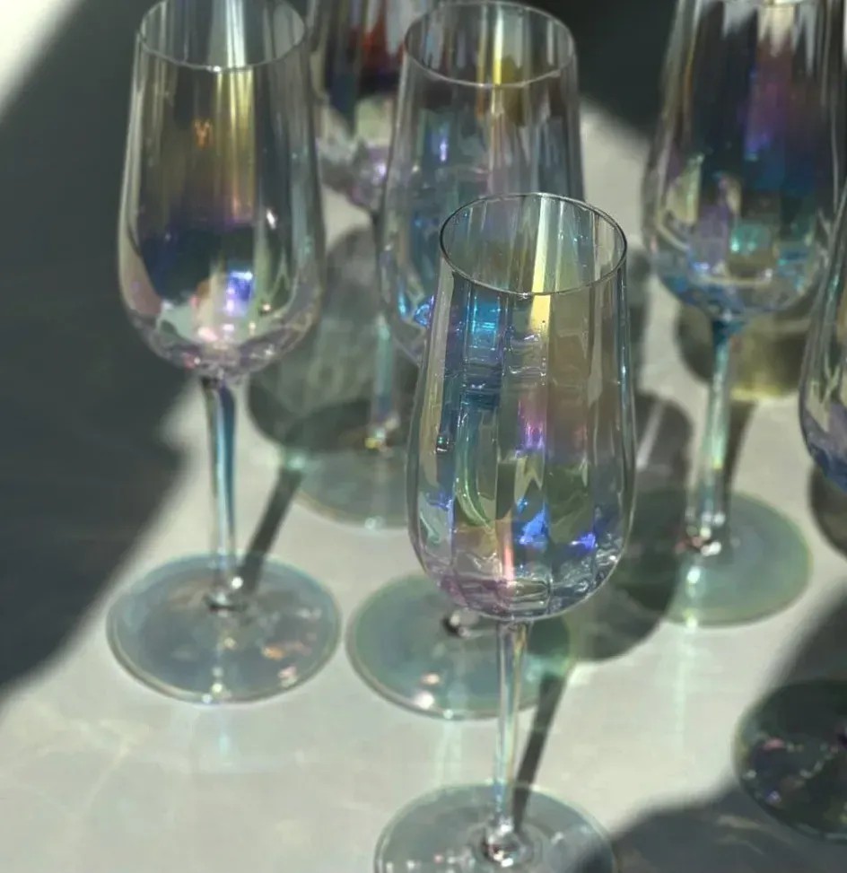 Це не просто келихи — це витвір, який додає настрою та краси вашому столу. Поверхня кожного келиха в колекції Rainbow Facets має вишукане перламутрове покриття, що грає усіма кольорами веселки при освітленні. Вони створені для тих, хто цінує деталі, естетику та стиль у кожному моменті життя.