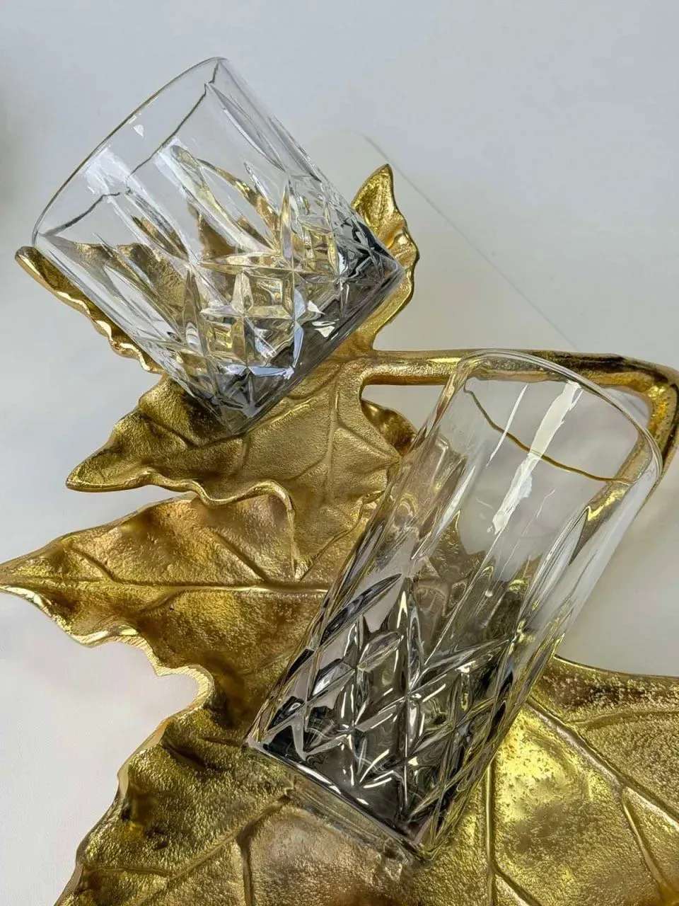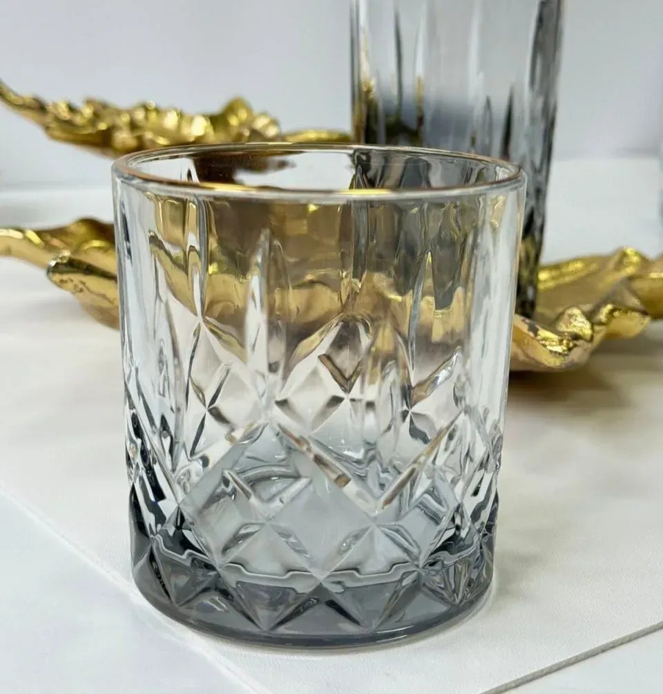 Фактурне скло зручно тримати в руці, а золота облямівка додає нотки вишуканості. Такі склянки доречні як у повсякденному використанні, так і на святковому столі.
