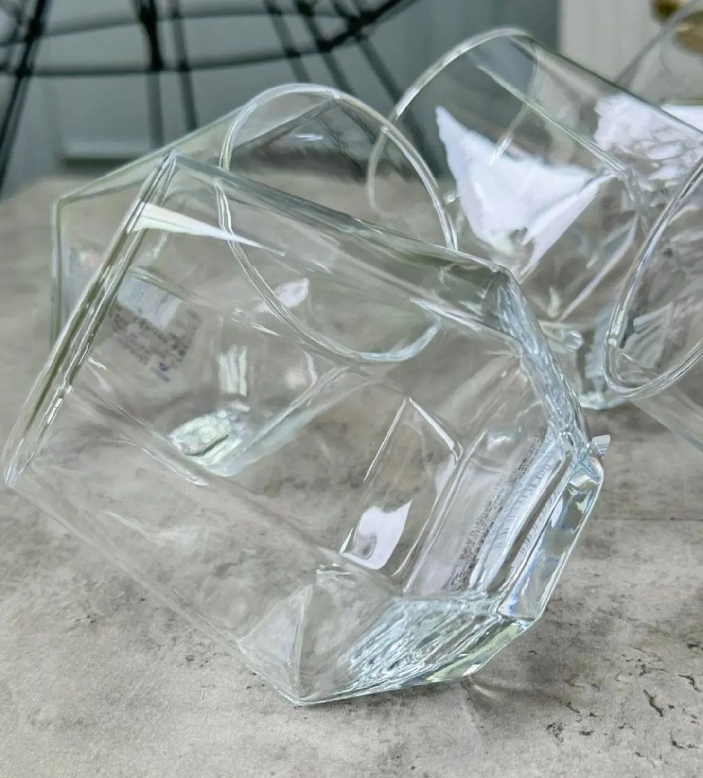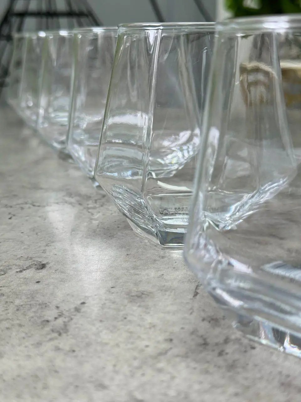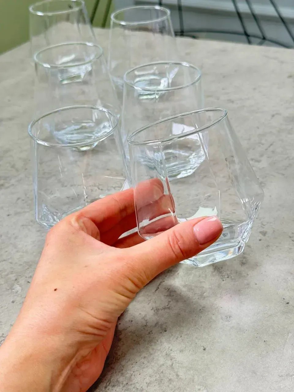 Склянки з набору «Атлантида» — це вдале поєднання сучасного стилю та зручності, яке додає особливого характеру кожній сервіровці. Завдяки граням та геометричній формі дна склянки переливаються в світлі, створюючи ефект глибини та легкого блиску у будь-якому напої.