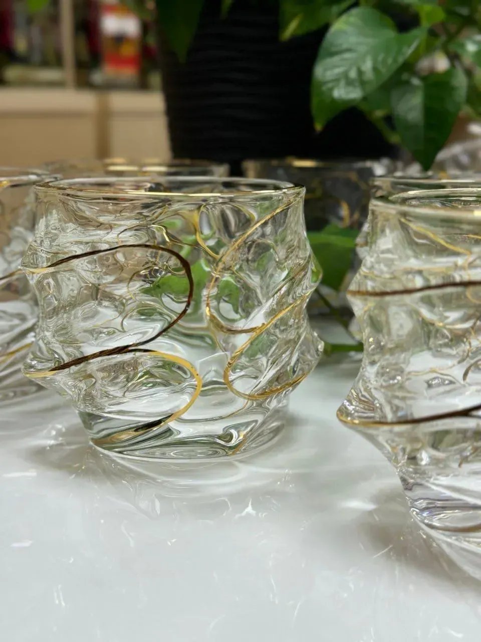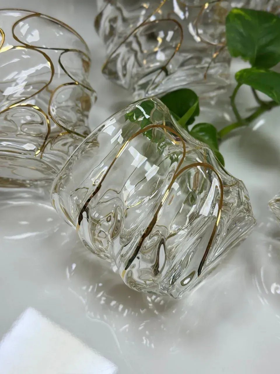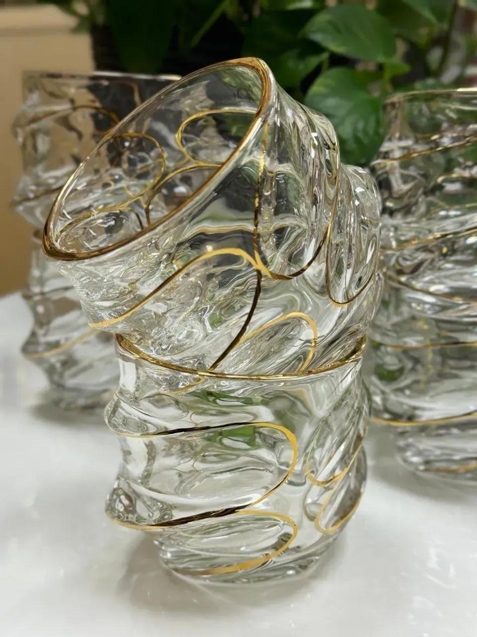 Але головне — це геометрія й рельєф, обрамлені золотими лініями. Вони створюють відчуття лаконічності, впорядкованості та вишуканості. Такі склянки роблять звичайні моменти особливими — вечері з друзями, святкові тости, романтичні вечори.