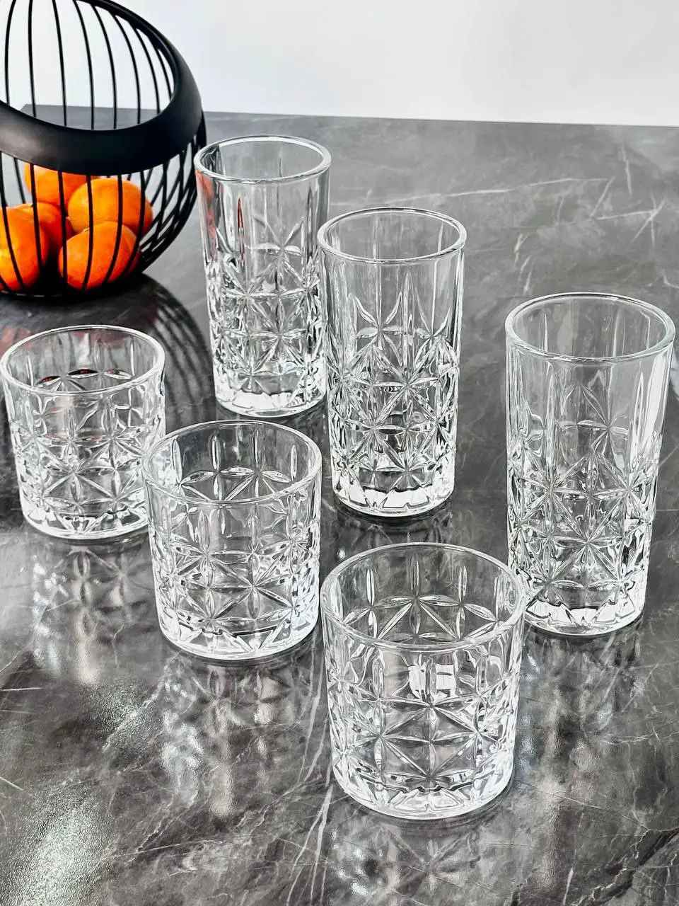 Ці склянки об'ємом 270 мл вражають виразним геометричним візерунком. Рельєфна поверхня створює гру світла, підкреслюючи колір напою та додаючи сервіровці особливого вигляду. Вода, сік, лимонад чи міцні напої — усе виглядає краще в "Кристал".