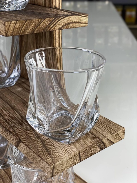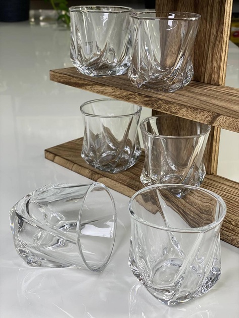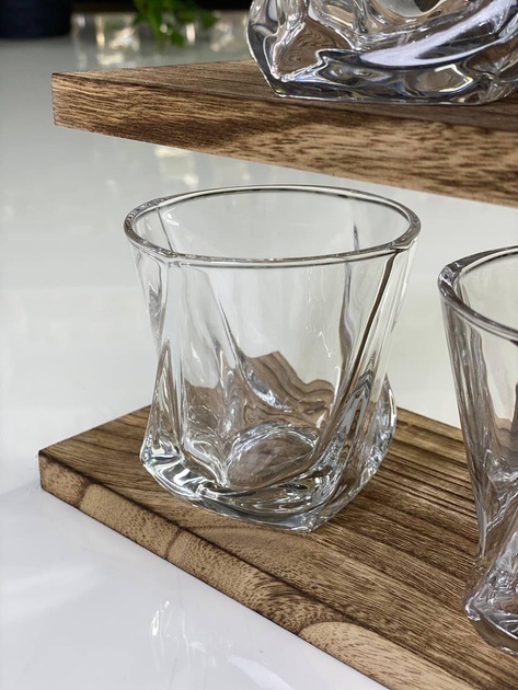 Завдяки товстому склу та стійкому дну склянки зручно тримати в руці. Об’єм 310 мл ідеально підходить для міцного алкоголю, а також для води, соку чи коктейлів. Цей набір — справжня знахідка для тих, хто цінує оригінальний дизайн та практичність в одному виробі.