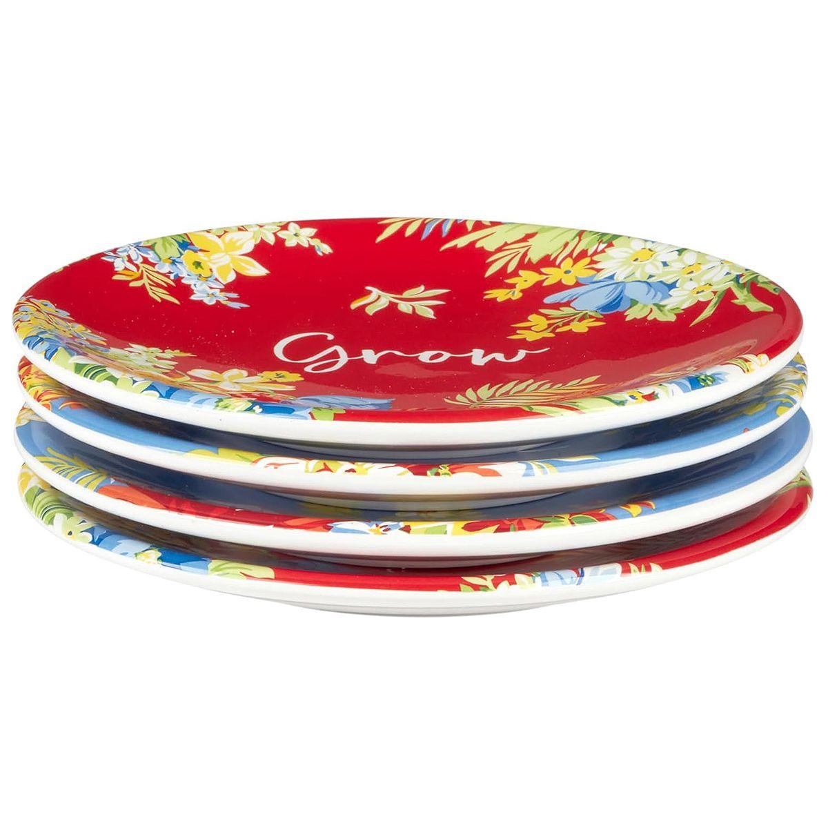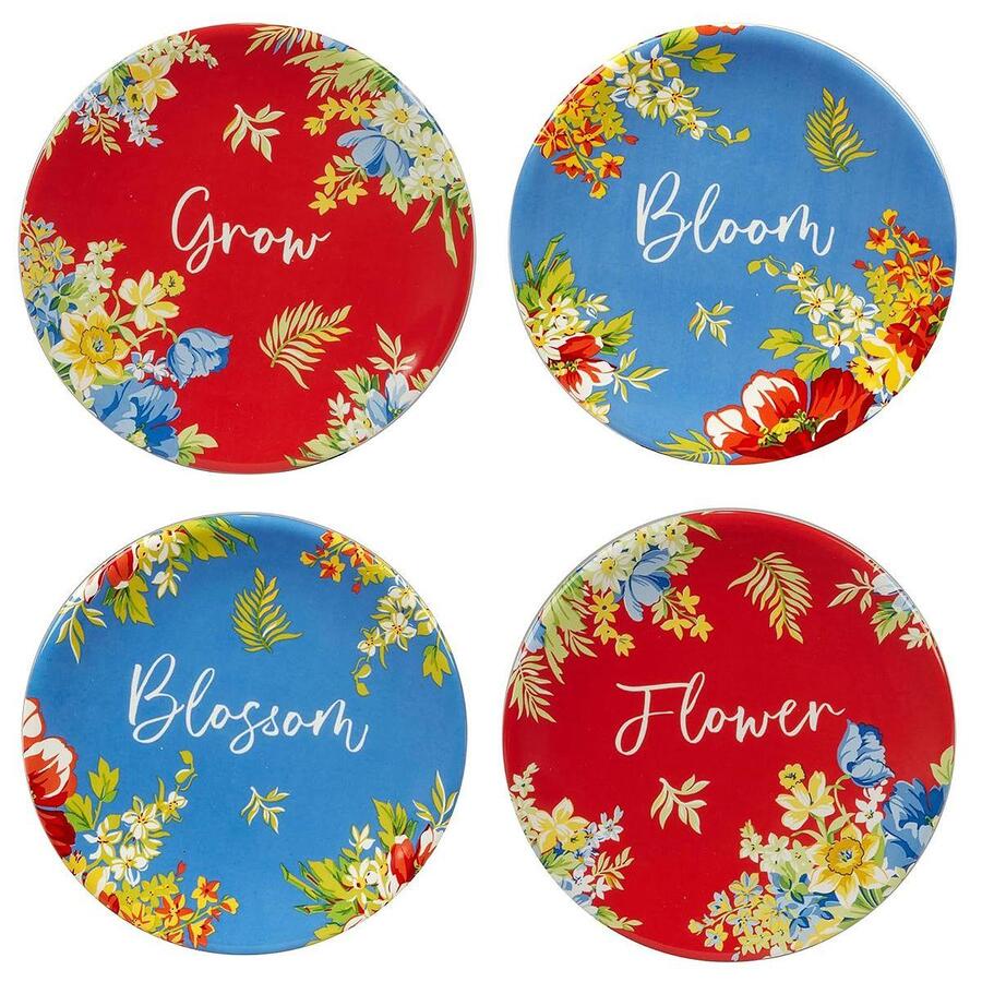 Набір з 4-х тарілок для канапе круглої форми "Феєрія квітів" від Certified International – це стильне доповнення до вашого столу. Кожна тарілка прикрашена яскравим квітковим візерунком на червоному або синьому тлі, що створює атмосферу свята та затишку. Завдяки компактному розміру вони ідеально підходять для подачі канапе, закусок, десертів або фруктів.