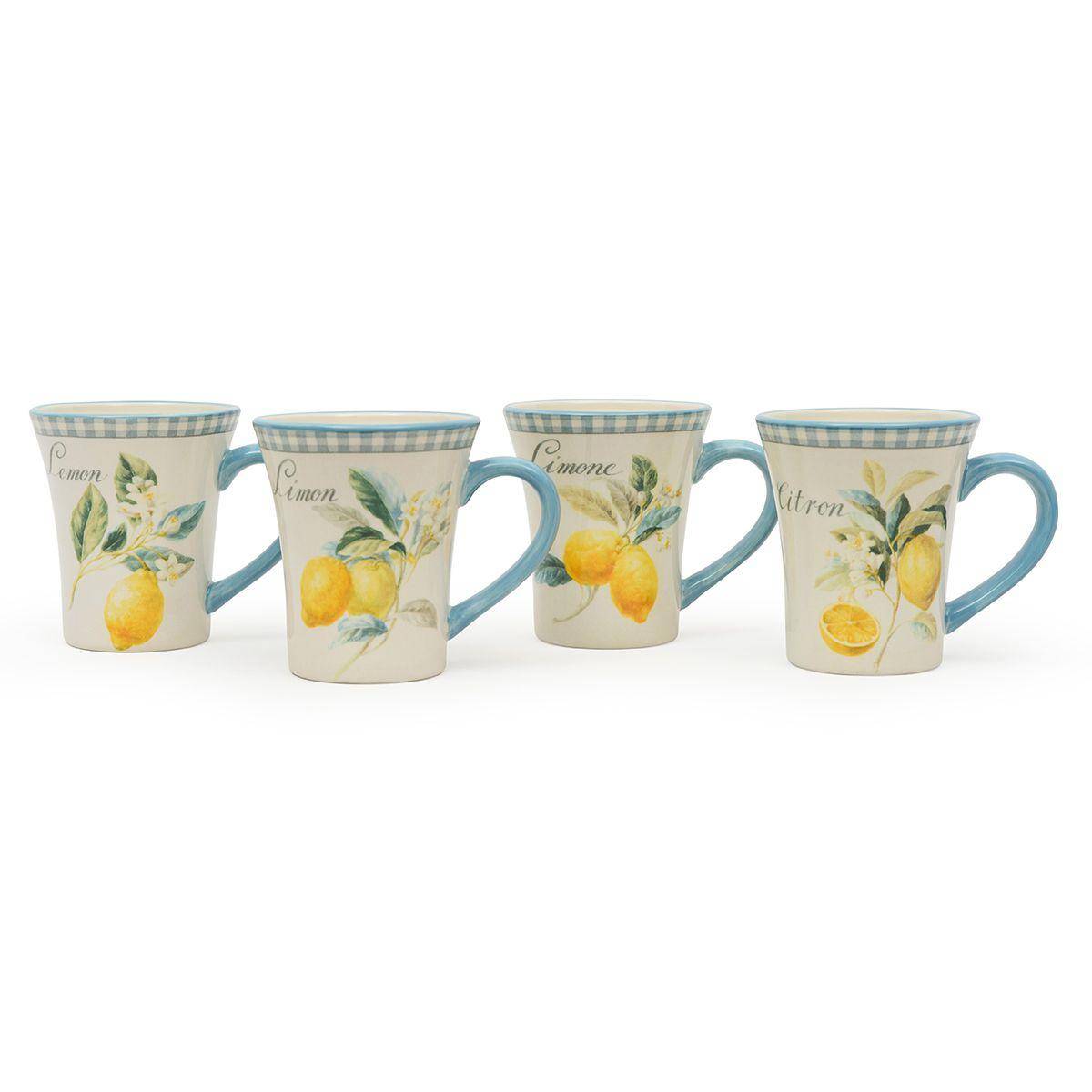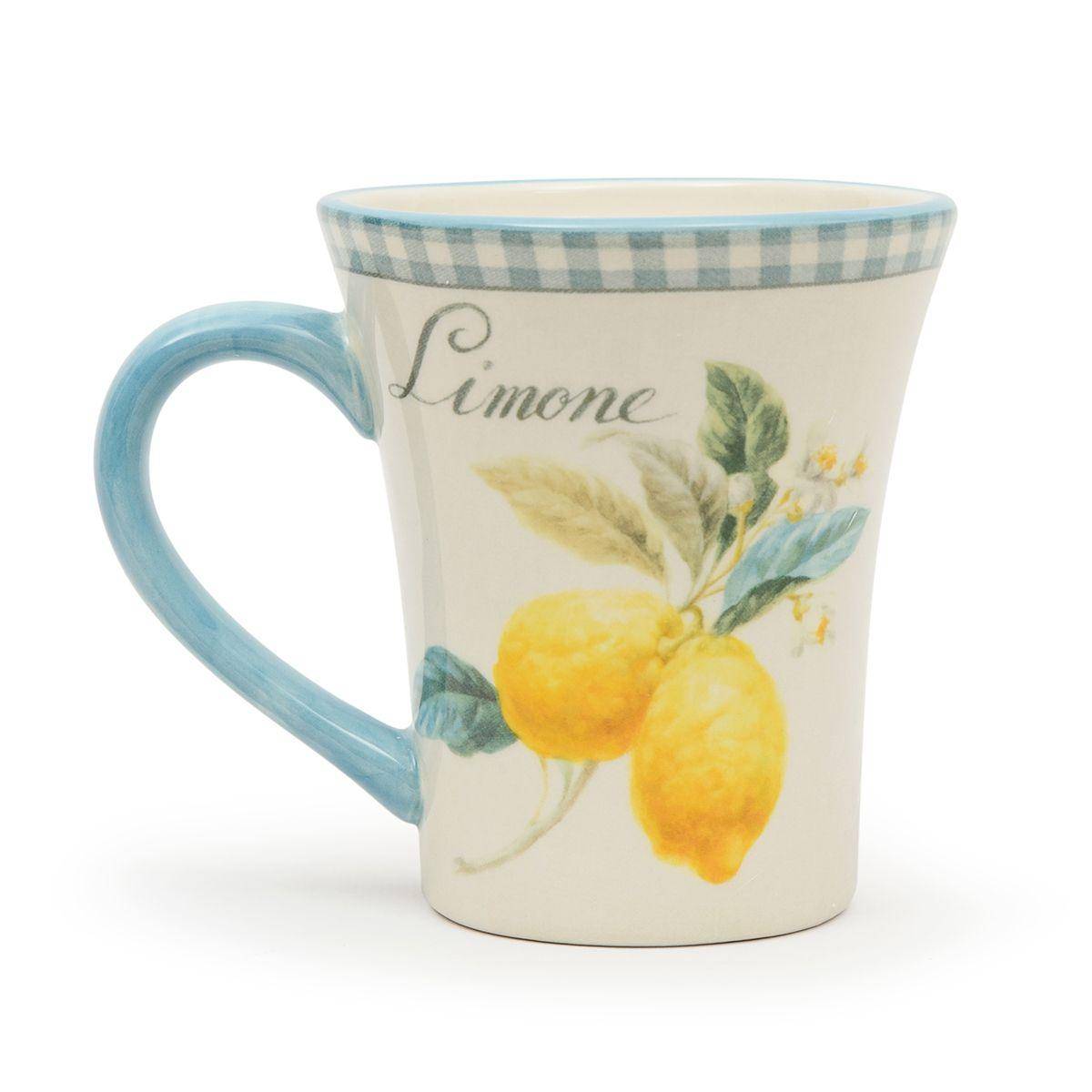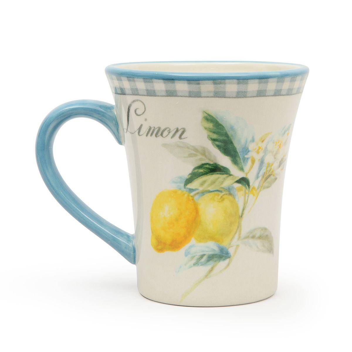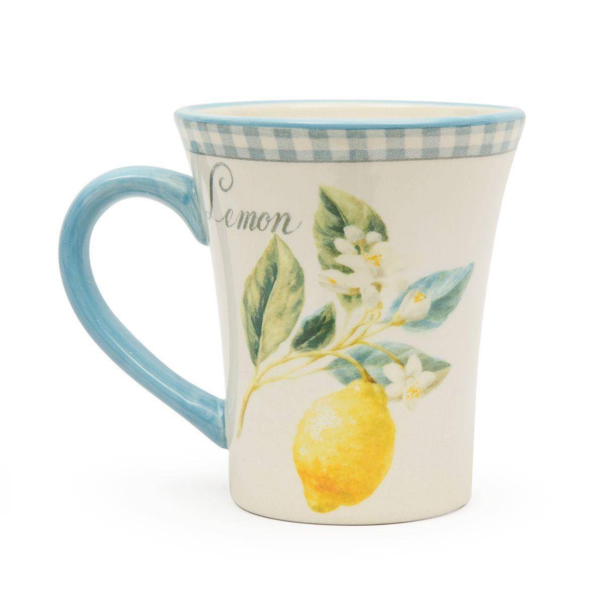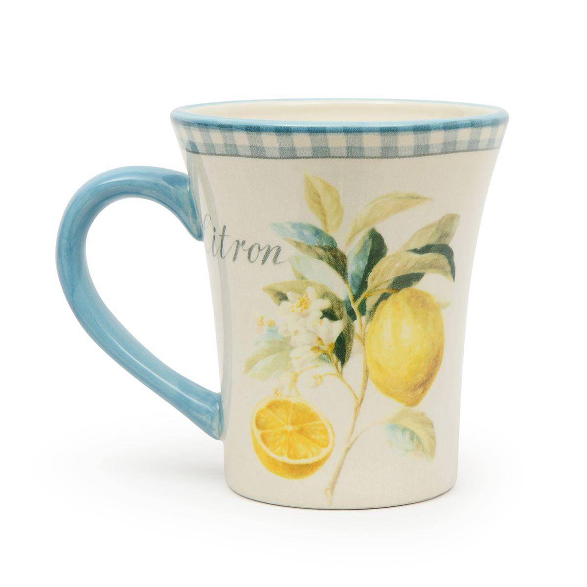 Витончені чашки у стилі колекції «Стиглий лимон», створений відомою художницею Данхуей Най для компанії Certified International, переносять нас у Прованс і дарують під час чаювання душевний спокій та тепло. На кожну чашку нанесено ніжний малюнок в акварельному стилі із зображенням гілочки лимонного дерева із соковитим плодом. Кайма з клітини віші вигідно завершує малюнок. Виконані елегантні кухлі з екологічної кераміки. Ручки блакитного кольору, зручна форма. До гуртків для повноти комплекту можна придивитися заварник або тарілки з цієї колекції.