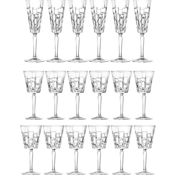 Набір келихів RCR ETNA на 18 предметів створений для тих, хто цінує стиль та гармонію в кожній деталі сервірування. Екохрусталь із характерним геометричним візерунком відбиває світло десятками граней, перетворюючи будь-який напій на справжню естетичну насолоду. Такий комплект стане прикрасою святкового столу та підкреслить смак його власників.