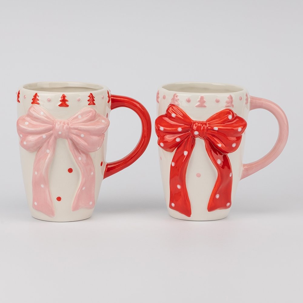 Набір з 2 керамічних новорічних чашок Святковий Бант 650 мл