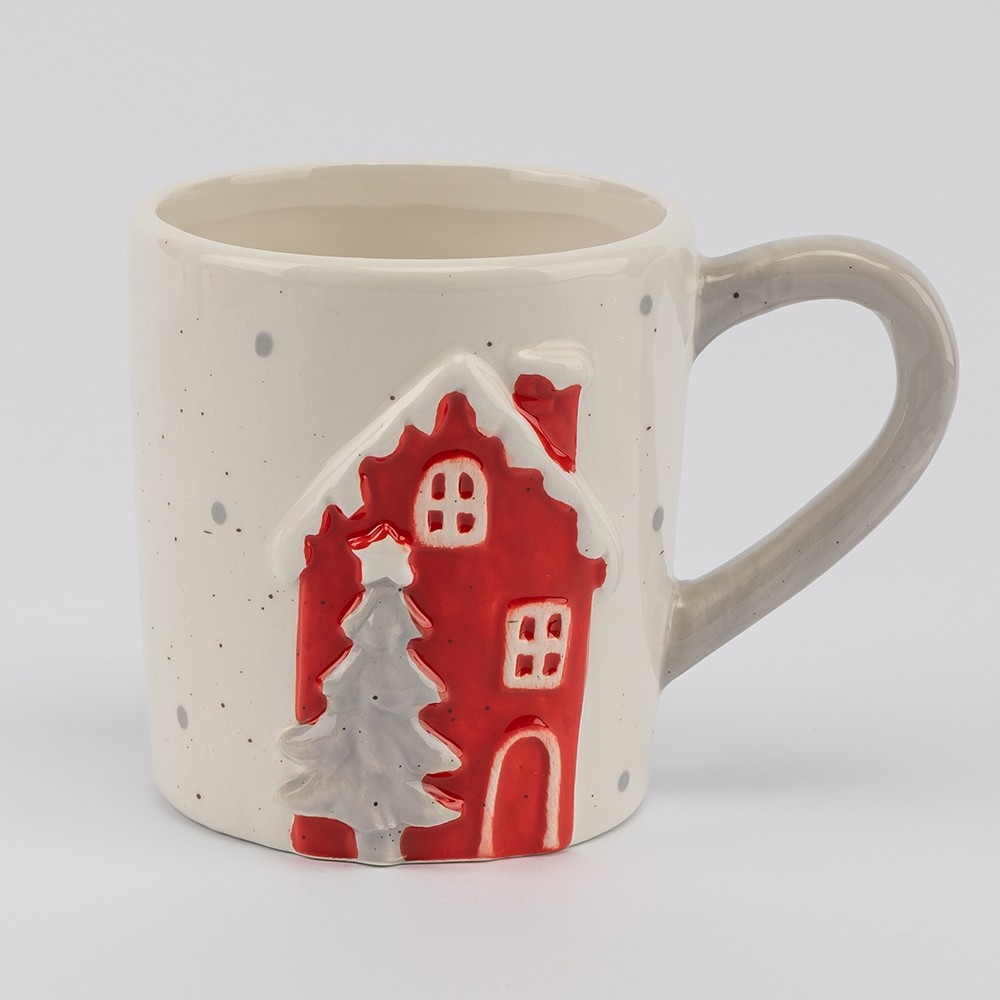 Колекція горнят "Winter Cottage" — це набір із чотирьох керамічних горнят по 400 мл, які нагадують затишні різдвяні будиночки зі зимових історій. Кожне горнятко прикрашене рельєфним зображенням будиночка та ялинки, а контрастна ручка додає акценту та робить дизайн виразним. Білосніжна основа з червоними та сірими елементами ідеально вписується у святкову атмосферу та створює відчуття зимового затишку.